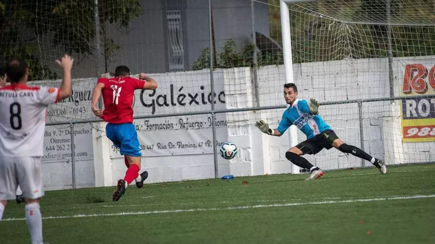 Viana volvió a ganarse el sueldo, como en Luintra frente al Nogueira una semana atrás. Algunos de los balones que repelió seguro que le dejaron marca. Al filo del descanso volvió a vérselas con un delantero contrario, con Xoel de nuevo. Salió ganador. Él no lo sabía entonces, pero no era otra cosa que prolongar la agonía.