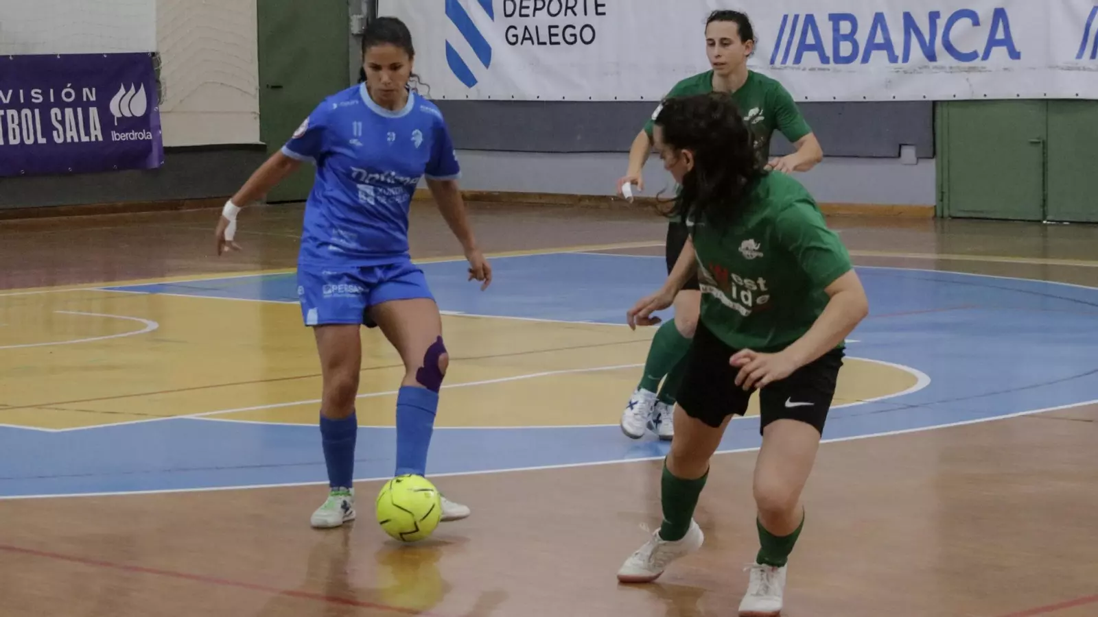 Poco a poco el Ontime fue generando peligro y el único tanto del primer acto lo marcó Judith Pedreira a pase de Rafinha, después de una contra finalizada por Raquelilla con un remate al palo.