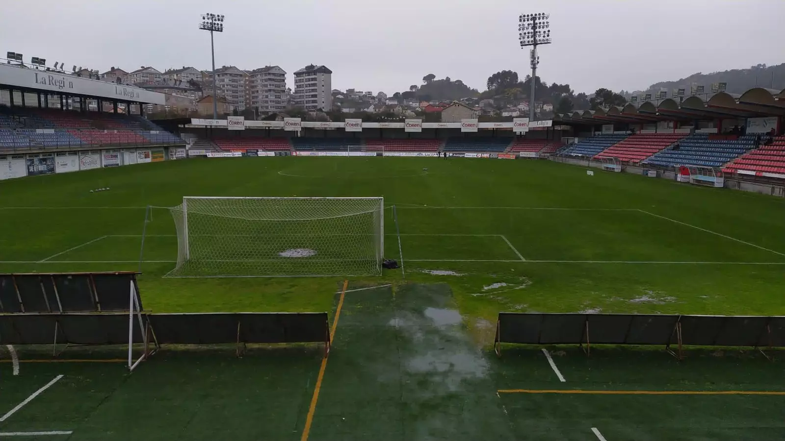 17:05 Sigue la lluvia sobre el césped ourensano. El balón rueda aunque con dificultades en muchas partes del terreno de juego