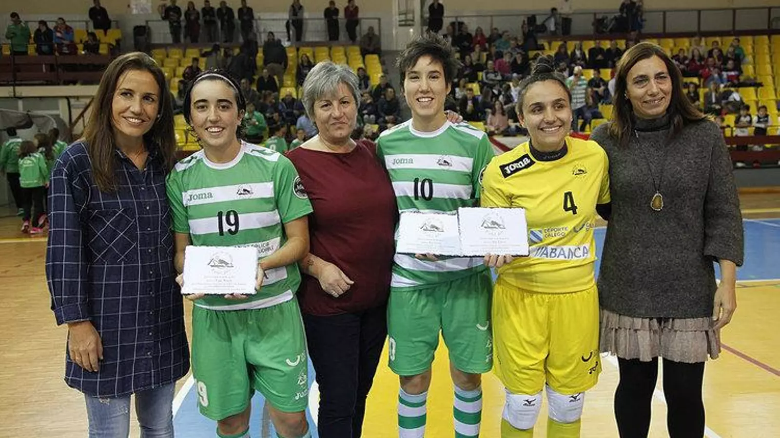 Regresó la liga en la primera división femenina y lo hizo con una jornada festiva en Os Remedios. Las internacionales del Cidade de As Burgas fueron homenajeadas después de su participación en el Torneo Mundial de Guatemala. Vane Sotelo, Iria Saeta y Ana López recibieron en los prolegómenos del partido una placa que fue entregada sobre el parquet por sus respectivas madres. Después, las integrantes de la escuela deportiva del Burgas, entregaron a las progenitoras de las mundialistas un ramo de flores en una jornada que fue perfecta pues en lo deportivo el equipo ourensano goleó al colista Rioja (7-1).