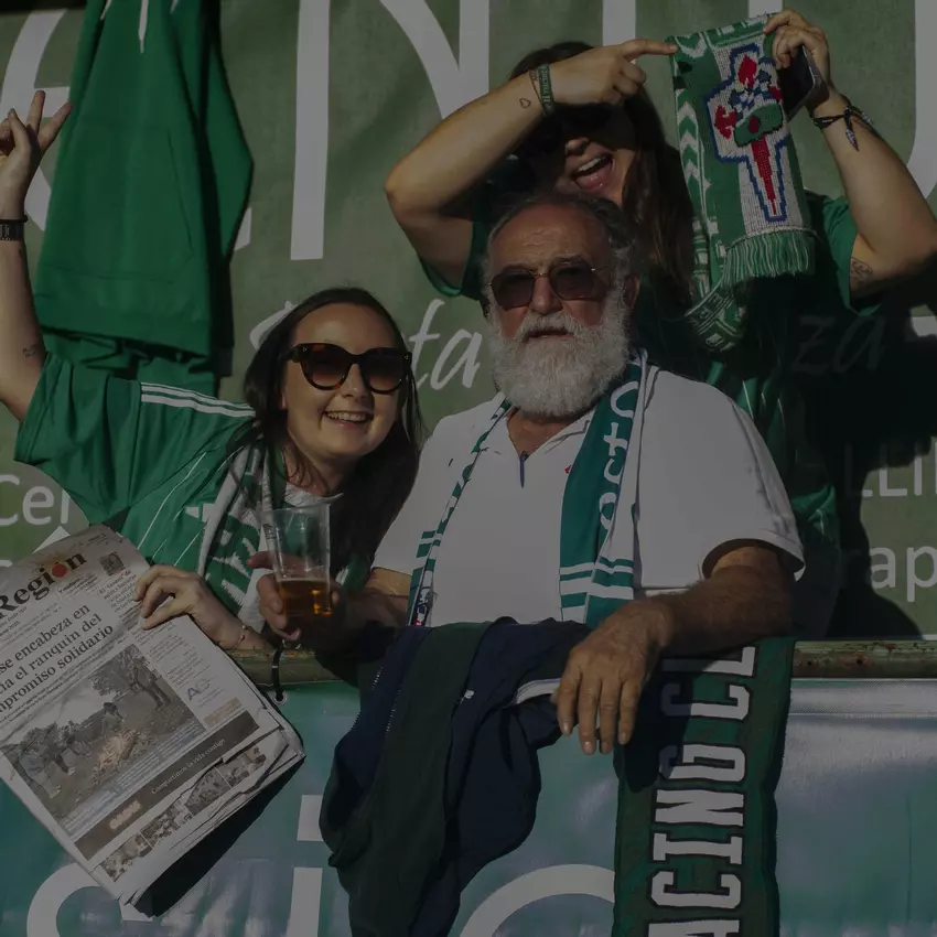 Los aficionados pendientes del partido y con la bufanda al cuello.