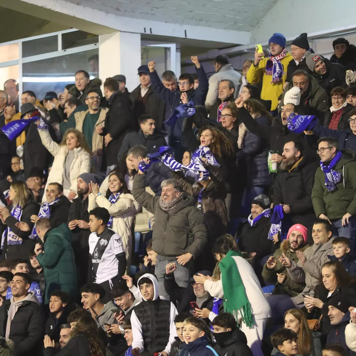 Las gradas de O Couto empiezan a tomar color, familias de aficionados llenan los asientos en una noche de Copa del Rey.