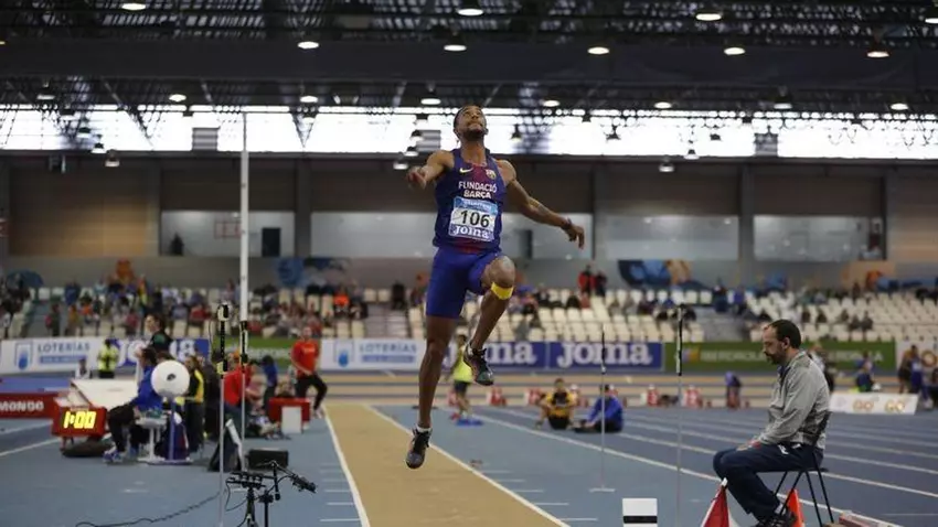 Jean Marie Okutu (FC Barcelona) recuperó este sábado en Ourense el título nacional de longitud en pista cubierta al derrotar con un salto de 7,93 al alicantino Eusebio Cáceres, que estaba líder a falta del último esfuerzo del atleta gallego.