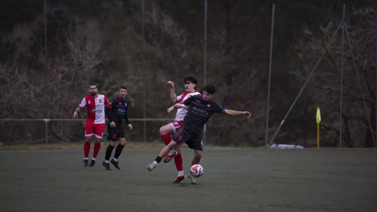 La primera parte estuvo marcada por las imprecisiones y las escasas llegadas a las áreas, un apartado que tuvo a los visitantes más cerca de ponerse por delante. En el amanecer del encuentro, un saque de esquina de Roberto fue rematado de cabeza por Peli y que desvió, con ciertos apuros, el portero Álvaro.
