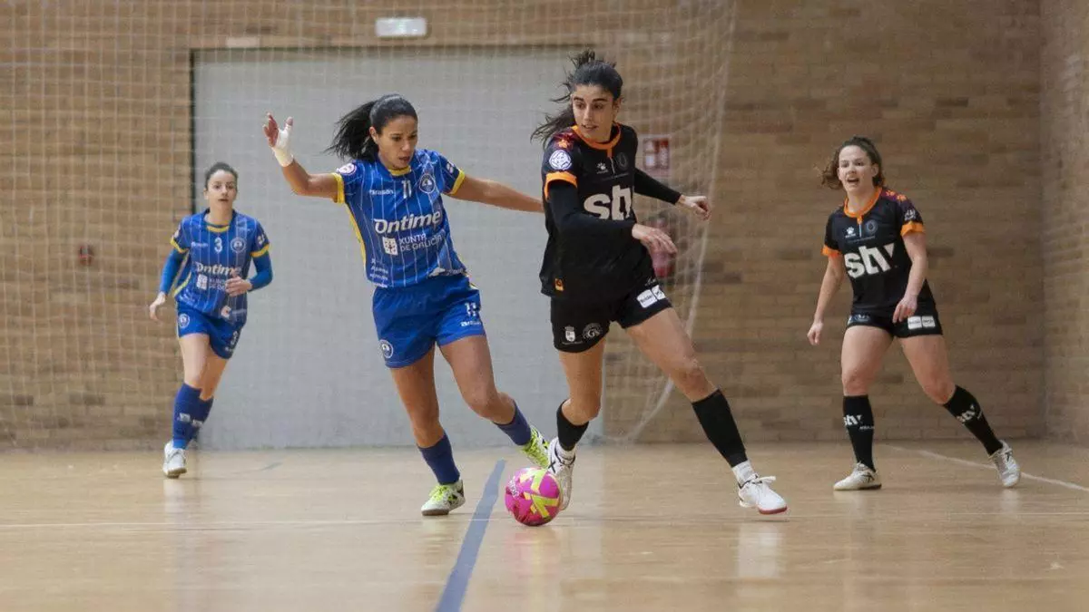 En los minutos finales, las visitantes apostaron por el juego de cinco, pero fue el Ourense Ontime quien estuvo más cerca de llevarse la victoria con remates desde campo propio ante un Roldán falto de acierto en la circulación.