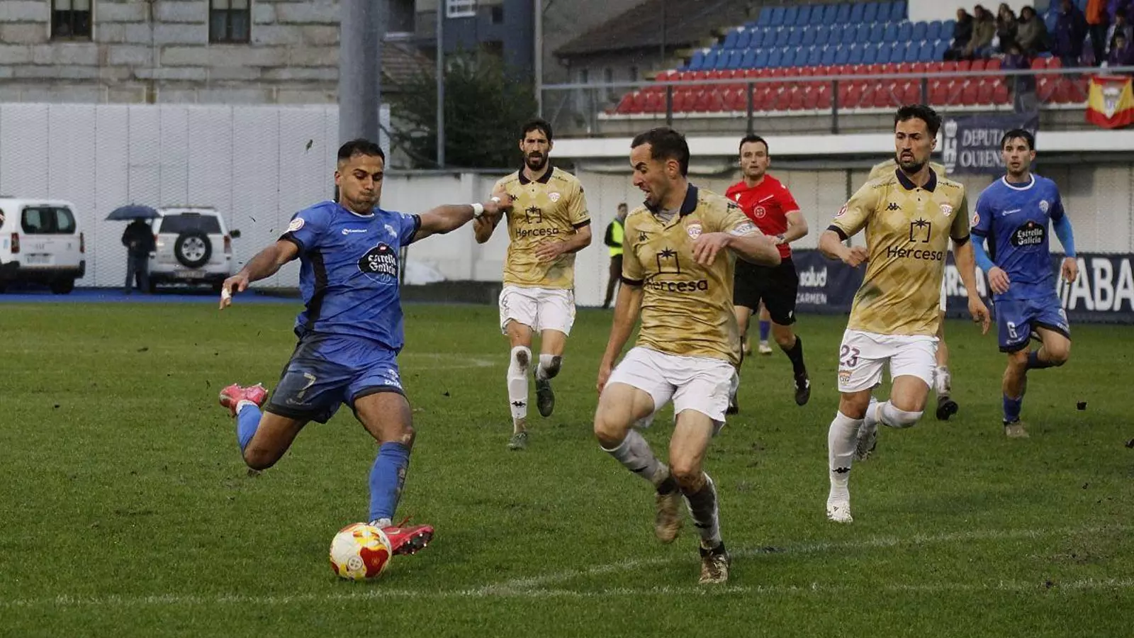 Por su parte, los ourensanos volvieron a coger el control e inquietaron con un par de disparos de Omar. Uno se fue fuera y el otro a las nubes y un remate en semifallo de Amin, que tampoco vio portería. Pero cuando parecía que se iba a llegar al descanso con el 0-0 inicial, una pared de Amin con Omar acabó con el tinerfeño derribado en el área. El claro penalti lo transformó Nacho Castillo, engañando al meta Zarco para poner el 1-0.