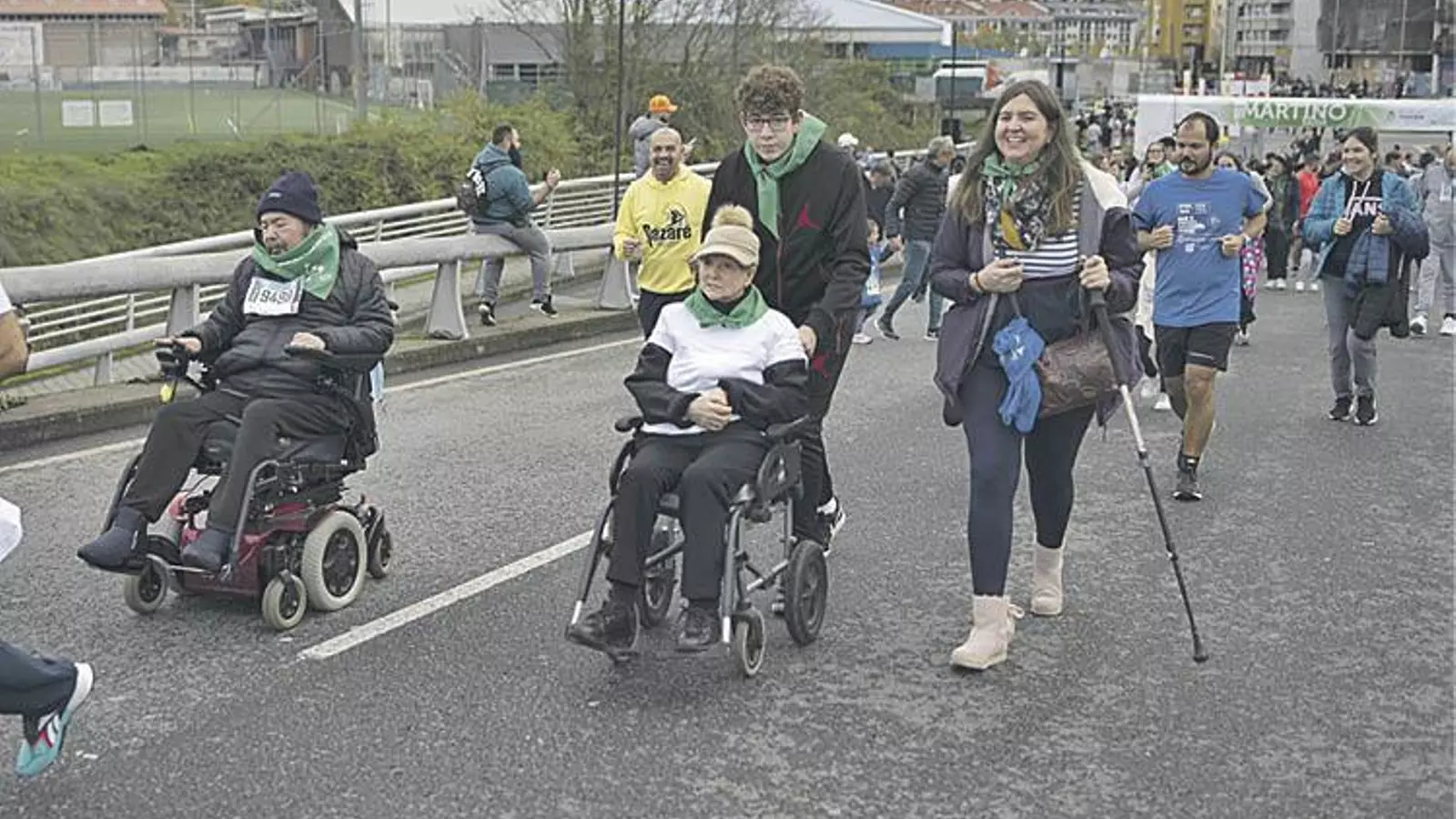 Fueron los encargados de poner el broche de oro a la San Martiño 2022. A eso de las 13:40 horas tomaba la salida la carrera inclusiva de la decana de las pruebas populares gallegas. Porque precisamente en su carácter popular está el secreto del éxito. Que todo aquel que quiera correr y participar de la fiesta lo pueda hacer sin importar edad o condición. Algo que arrancó en la edición del año 2018 y que ya nadie discute. Personas con discapacidad, acompañantes o incluso niños y niñas muy nacidos del 2015 en adelante y de la mano de sus familiares pudieron disfrutar de un recorrido de 1,4 kilómetros por parte de los lugares más representativos de la prueba y cruzaron la línea de meta con la satisfacción del trabajo bien hecho. Un afán de superación que no tiene barreras.