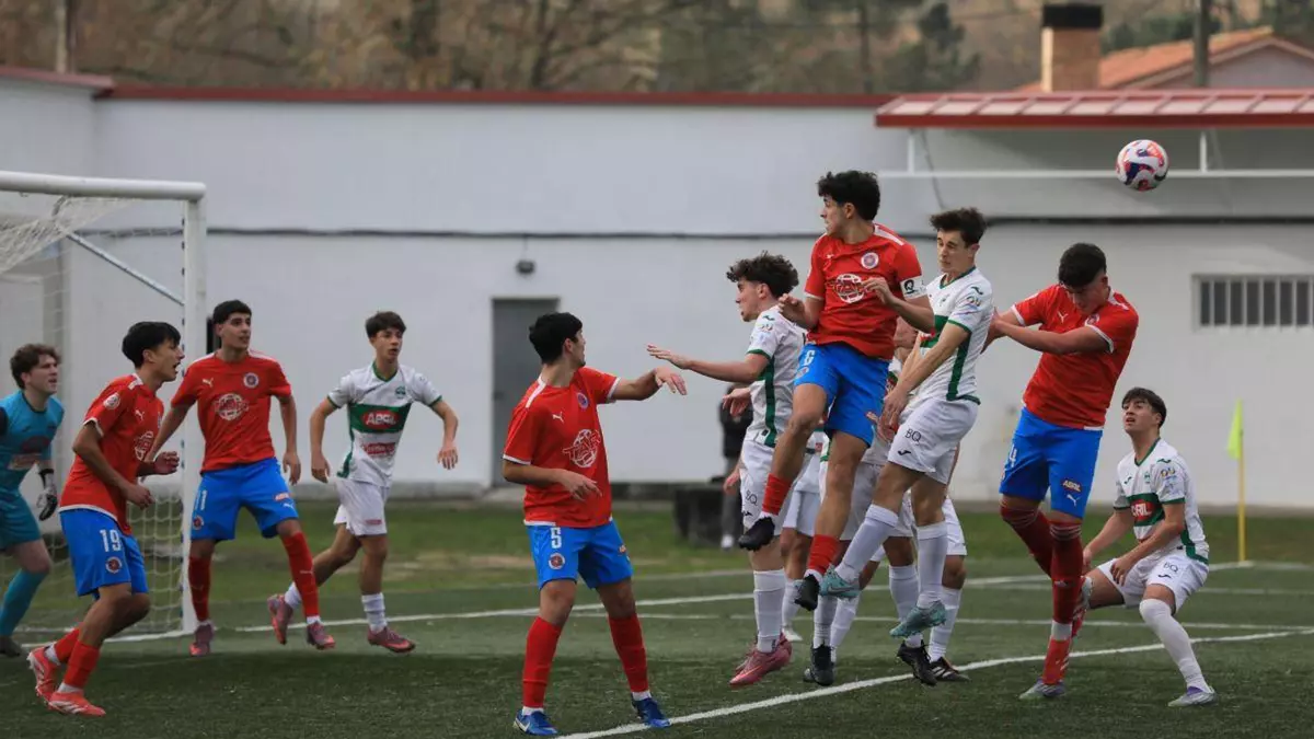 La segunda vuelta de la Liga Nacional Juvenil arrancó con el derbi ourensano entre la UD Ourense y el Pabellón, un encuentro que terminó en empate a un tanto. Los de Rubén García consiguieron avanzarse en el marcador a los dos minutos de la reanudación. Nico recogió un balón a unos 30 metros de portería tras un rechace rival, lo paró con el pecho y conectó una volea que acabó entrando pegado al poste. Poco después, los pabellonistas dispusieron de un mano a mano de David y un disparo de Ander para hacer el 0-2.