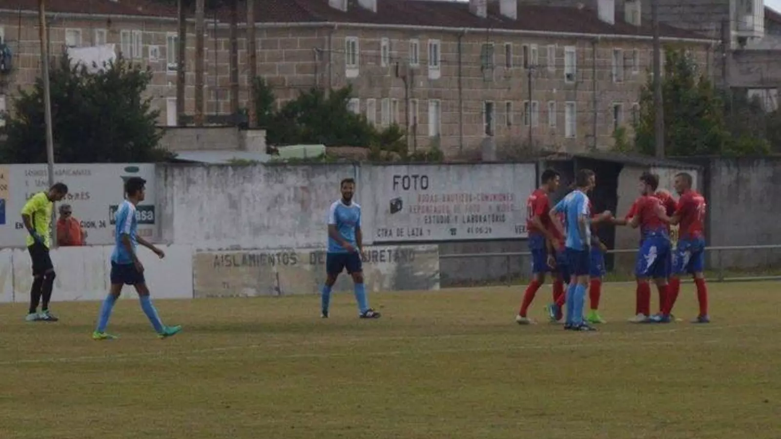 Varios jugadores del Verín y del Cortegada discuten durante el partido del pasado domingo.