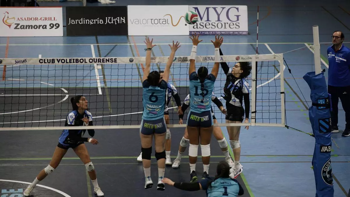 Los parciales de 25-23, 25-19 y 25-17 reflejan un partido en el que el conjunto ourensano fue creciendo según avanzaba el partido, para terminar ganando con mucha solvencia. Clave fue la resolución del primer set. Las de Pablo Pérez, que se metieron solas en un problema después de entrar en el tramo final con una cómoda ventaja de cinco puntos (23-18). Llegaron entonces cuatro puntos seguidos del equipo coruñés e incluso un ataque para forzar la igualada, sin concretar. Entonces, dos puntos seguidos dieron el parcial a las locales.