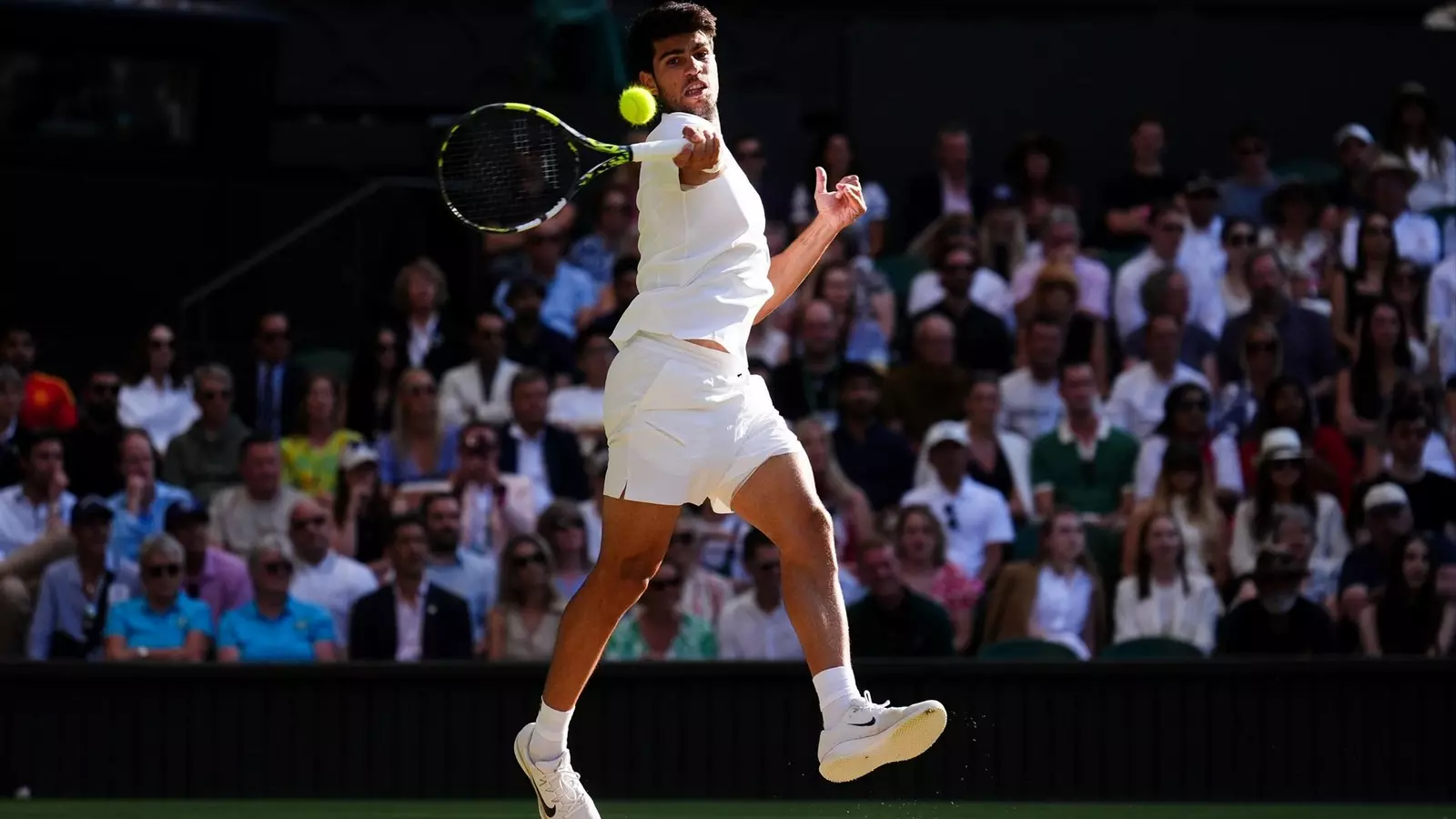 La mejor versión de Carlos Alcaraz ha llegado a Wimbledon 2025. El tenista murciano, ganador de las dos últimas ediciones, ha firmado en los cuartos de final su mejor actuación en el torneo, superando por la vía rápida a un impotente Cameron Norrie. El español, que ya suma 23 victorias consecutivas y 19 en hierba, fue un vendaval con una variedad en su juego que hizo disfrutar al publico de la central, al que se metió en el bolsillo pese a jugar ante su última baza local.