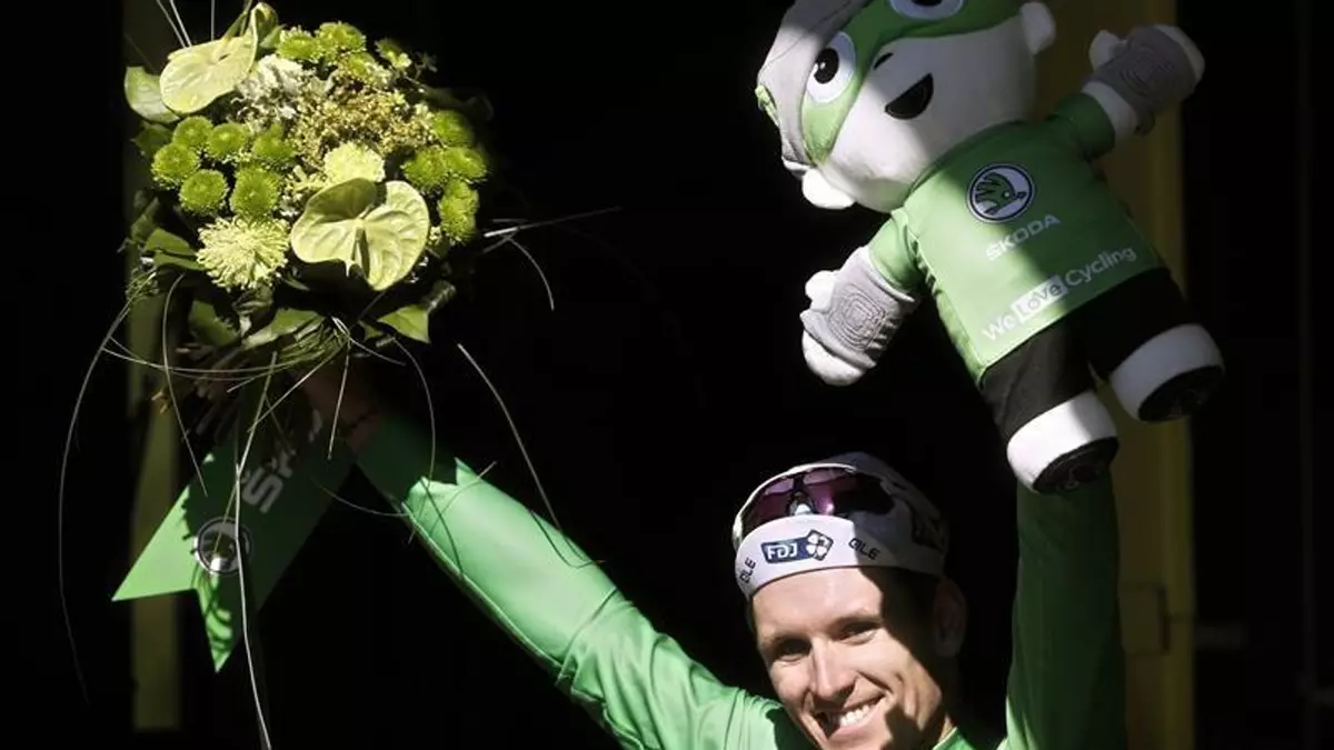 tricolor y ahora dueño del maillot verde. El ganador de la Milan San Remo 2016 logró la novena victoria de la temporada, en su puesta de largo en la carrera con la que soñaba desde niño el ciclista de Beauvais.