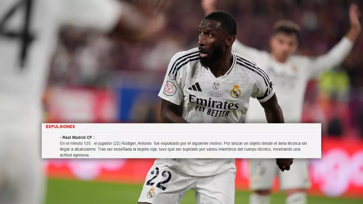 El Real Madrid no solo perdió la final de la Copa del Rey frente al FC Barcelona, sumando así su segundo trofeo de la temporada perdido ante los azulgranas tras la Supercopa de España, sino que también se vio envuelto en un serio problema disciplinario. En los instantes finales de un partido marcado por la tensión, Antonio Rüdiger, Lucas Vázquez y Jude Bellingham fueron expulsados por el árbitro De Burgos Bengoetxea. La situación más delicada recae sobre el central alemán.