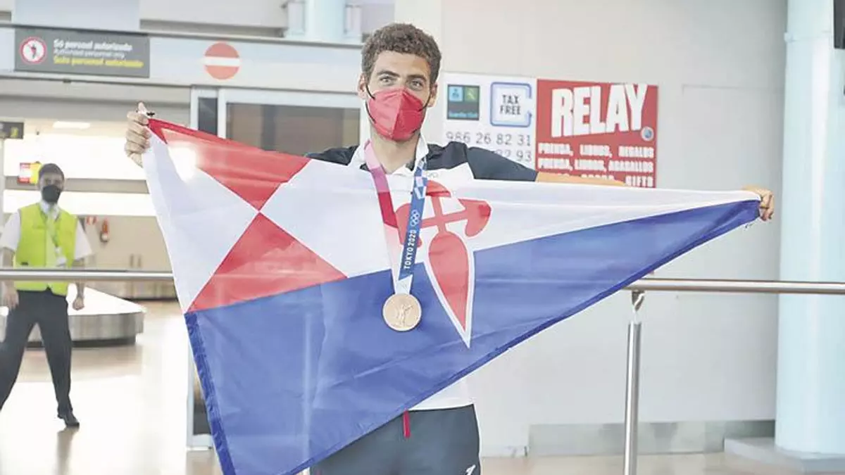 Al poco de dejar la aeronave, el flamante medallista de plata asumía que “aínda non” tenía asumido el éxito. “Describiría estes últimos días coma unha montaña rusa, entre emocións, sensacións e un pouco de disfrute. Creo que todavía non son consciente da realidade que estou a vivir. Sen dúbida, algo especial”, comenzó. Una sensación de irrealidad potenciada incluso por el detalle de la tripulación en su vuelo desde Madrid. “Portáronse moi ben porque estiven na cabina e foi algo moi especial chegar así e poder ver a ría desta maneira entrando dende Cesantes. Algo moi especial que non fixera antes. Van ser días moi especiais os que están por vir aínda”, asumía.