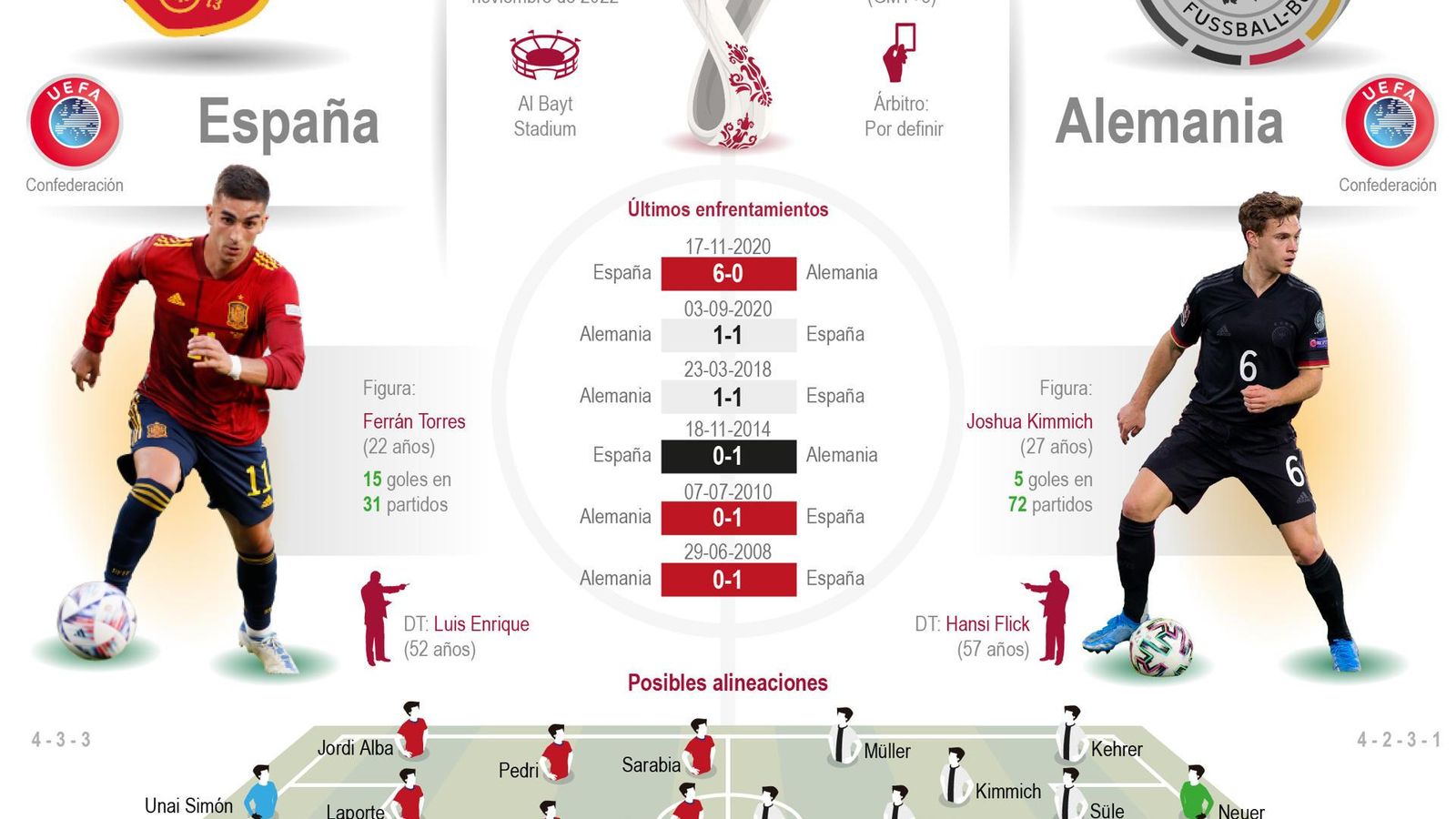 Infografía y previa | Alemania calibra la realidad de España en el Mundial de Qatar