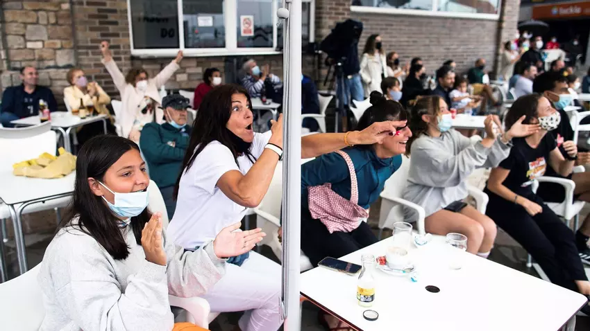 La jornada lluviosa no deslució su logro. Sí hubo, por las precipitaciones, entradas y salidas al espacio habilitado para seguir la retransmisión, pues no había carpa. Pero el gran momento nadie lo pasó por alto.