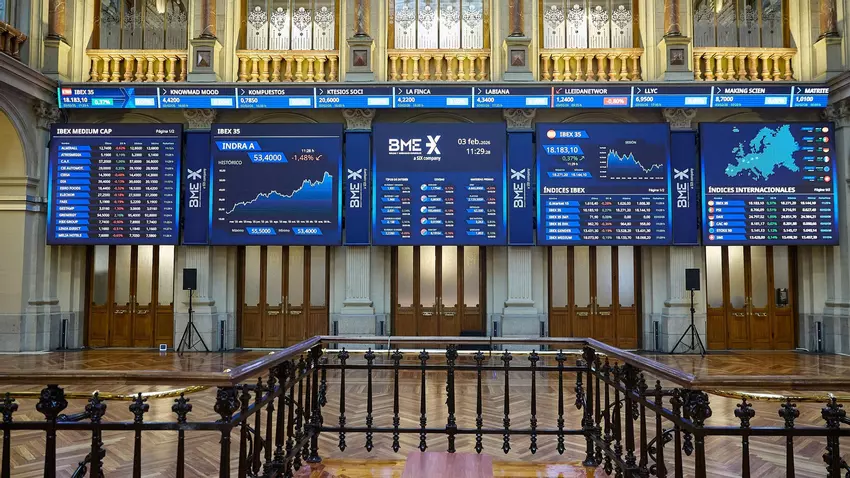 En este contexto, los principales valores alcistas en la media sesión eran Banco Santander (+2,99%), Bankinter (+2,57%), Banco Sabadell (+2,37%), Endesa (+2,10%), BBVA (+2,09%) y Unicaja (+1,98%). Del lado contrario se situaban Indra (-2,78%), Rovi (-1,46%), Acciona Energía (-1,38%), Solaria (-1,17%), Amadeus (-1,12%) y Merlin (-0,58%).
