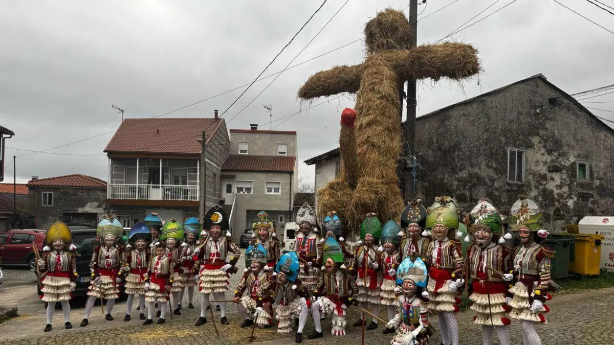 O sábado, a veciñanza deu forma conxuntamente ao “Entroido”, unha xigantesca figura de palla con forma e atributos masculinos, e que se situou na praza.