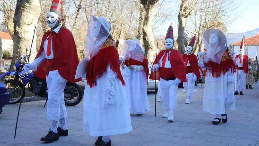 Madamitas y madamitos desfilaron este domingo por las calles de Terrachán en el día grande del Entroido de Entrimo. Tras la cena de comadres del jueves y la fiesta de disfraces del sábado en el pabellón, grandes y pequeños compartieron el protagonismo de los festejos luciendo con orgullo el traje típico local, acompañados de los cabezudos, los gaiteros de Os Rampeiros y también una pequeña representación de los follateiros de Lobios .