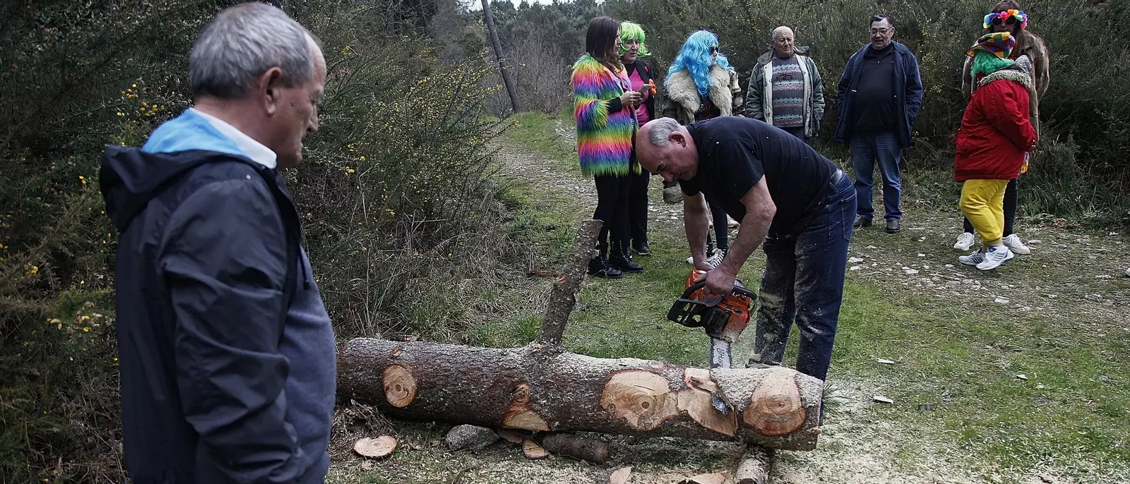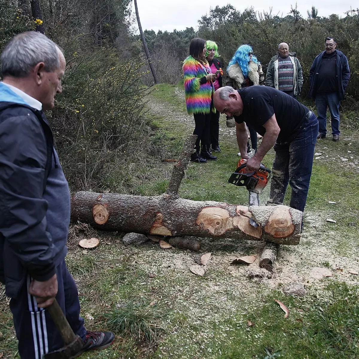 Nadie se quiso perder una cita tan importante como es el Lunes de Entroido, momento en el que los vecinos de As Teixugueiras escogen la materia prima con la que harán su meco del Entroido.