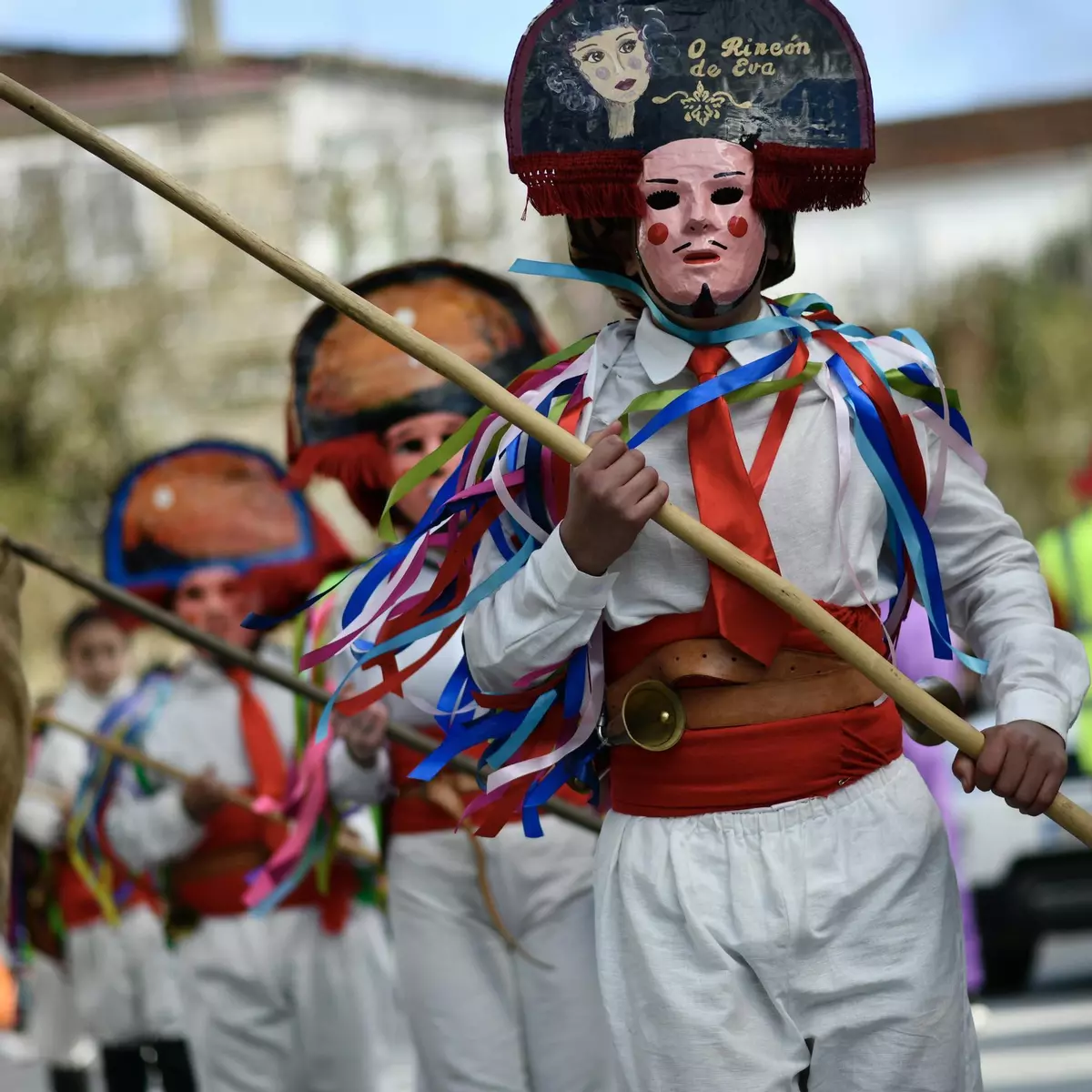 La jornada de este sábado, 14 de febrero, es el día grande del Entroido en esta localidad, con una agenda que mezcla folclore y gastronomía. El evento arrancó a las 17.00 horas con el desfile de los chocalleiros, que estuvieron acompañados por la banda de gaitas del Ayuntamiento y el folión local, El Perro de San Roque, además de diversas comparsas y grupos de disfraces.