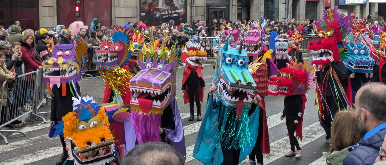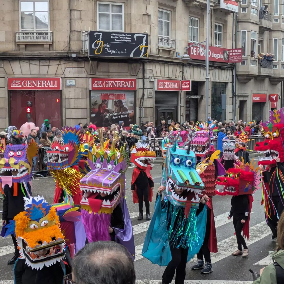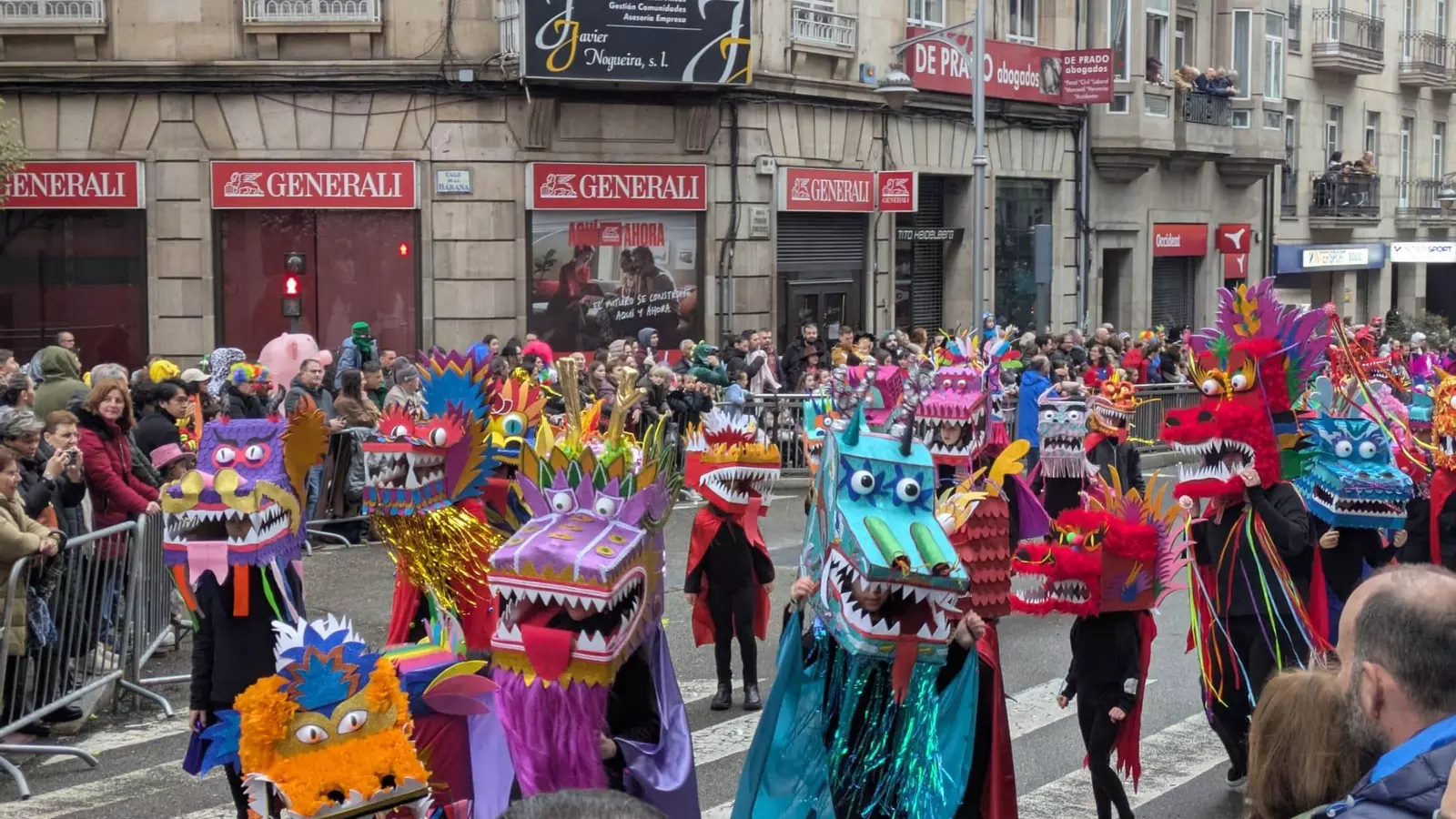 Desde primera hora de la tarde, miles de personas se congregaron en las principales vías de Ourense para presenciar el paso de carrozas, comparsas y grupos ataviados con disfraces que envuelven a la ciudad en el ambiente festivo.