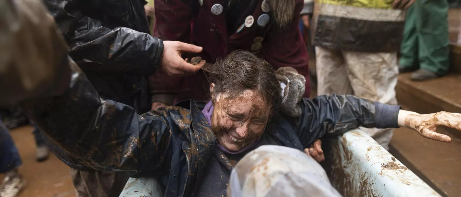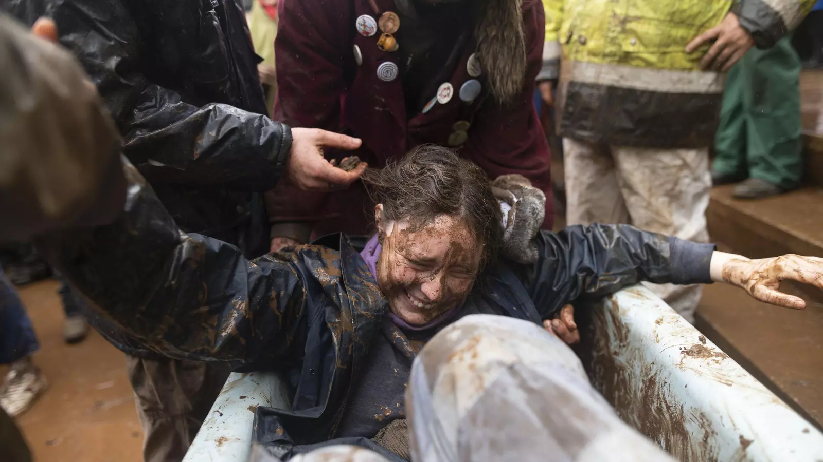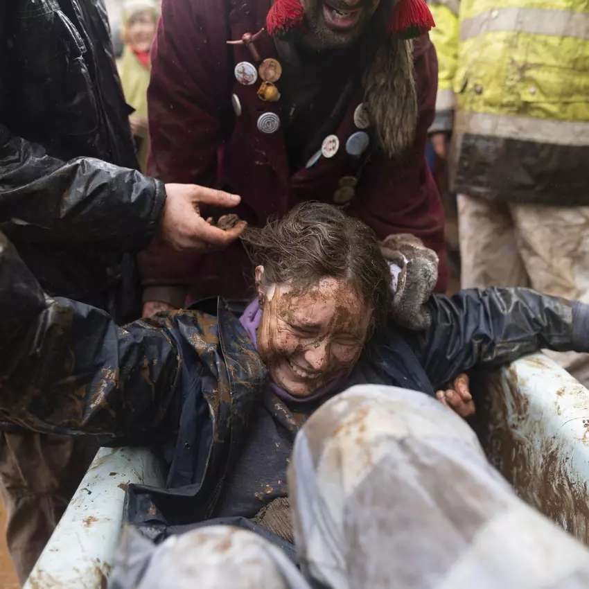 A mañá arrancou con chuvia e coa farrapada, que volveu tinguir de marrón a praza. Nunha batalla onde coma na vida, cómpre mollarse, veciños e visitantes lanzáronse trapos con barro despois de enlamalos no bulleiro, cumprindo coa máxima de que quen menos se quere manchar, máis se acaba enzoufando.