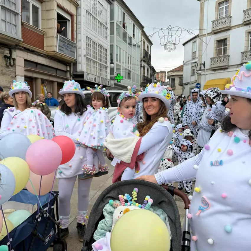 Los niños y niñas de Viana do Bolo llenan las calles de música, color y tradición en el Día de Comadres y Compadres con disfraces creativos y originales hechos a mano, con la ayuda de familiares y personal educativo