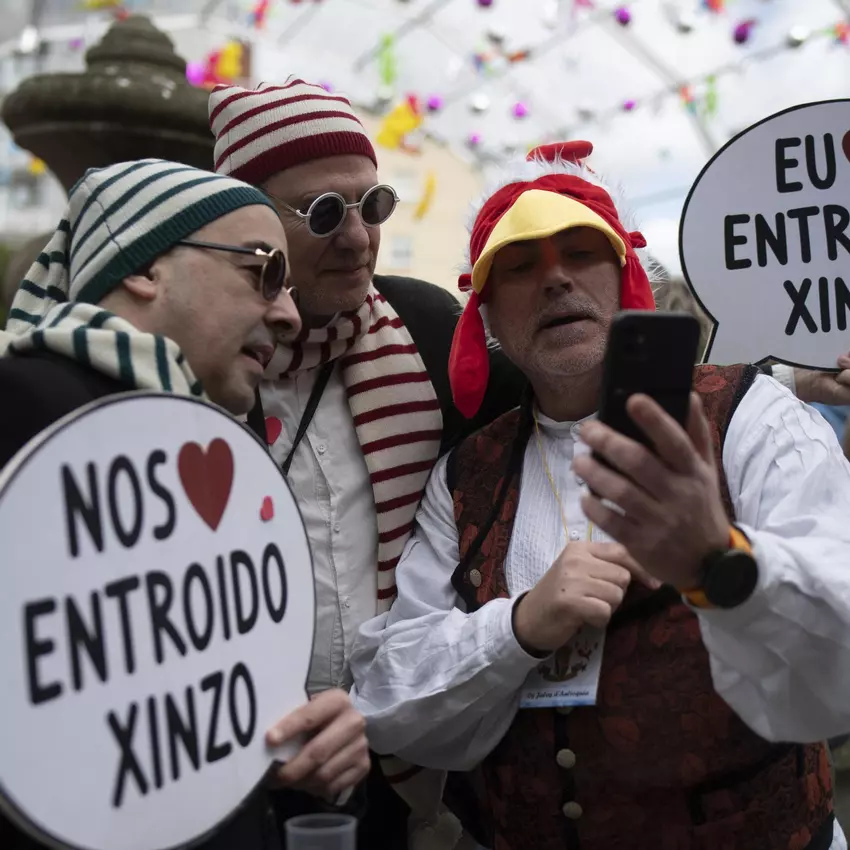 Con el sol resplandeciendo entre nubes puntuales que por momentos oscurecen la jornada, fría y con viento, los entroideiros de Xinzo salieron a las calles convocados por el sonido de las charangas, que a mediodía empezaron su troula.