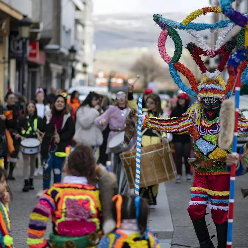 El Entroido comienza a llenar de color, ritmo y tradición la provincia de Ourense. Este sábado Viana do Bolo arrancó el suyo con el folión femenino donde las mujeres y niñas de la localidad recorrieron las calles disfrazadas y con bombos poniendo el ritmo.