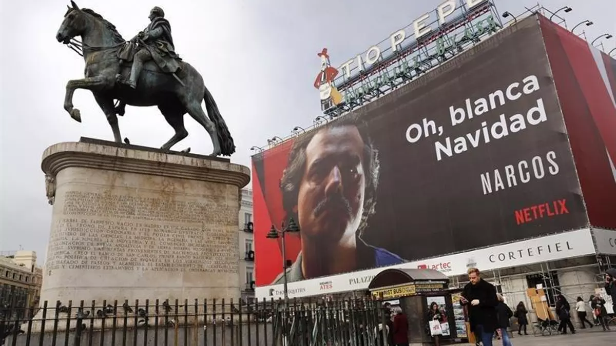 El Ayuntamiento de Madrid considera que no es competente para retirar el cartel publicitario de la Puerta del Sol de la serie "Narcos" de Netflix y sugiere a Colombia a exponer sus quejas sobre su contenido ante otros organismos, en particular la asociación `Autocontrol`.