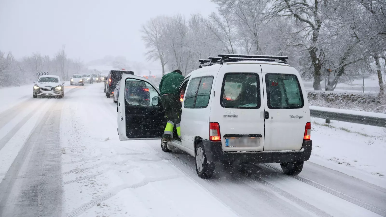 La borrasca Kristin tiñe España de blanco: nieve, viento y casi un centenar de carreteras afectadas