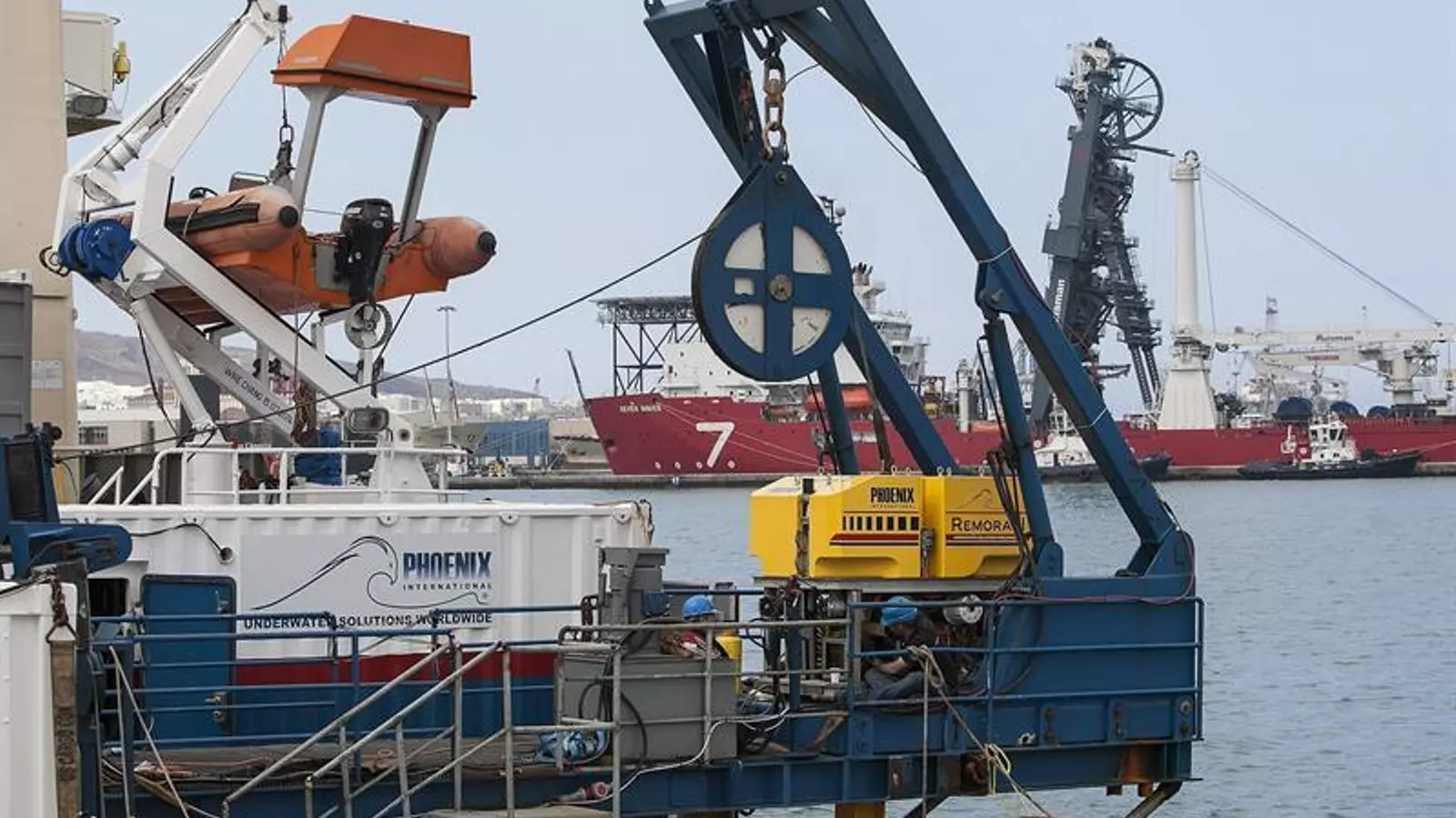 La empresa Phoenix ha aportado el buque EDT "Ares", que se incorporó el pasado día 16 a las labores de rescate. Su objetivo es colaborar en la búsqueda de los restos del helicóptero, que finalmente fueron localizados la tarde del sábado y, a ser posible, en su recuperación.
