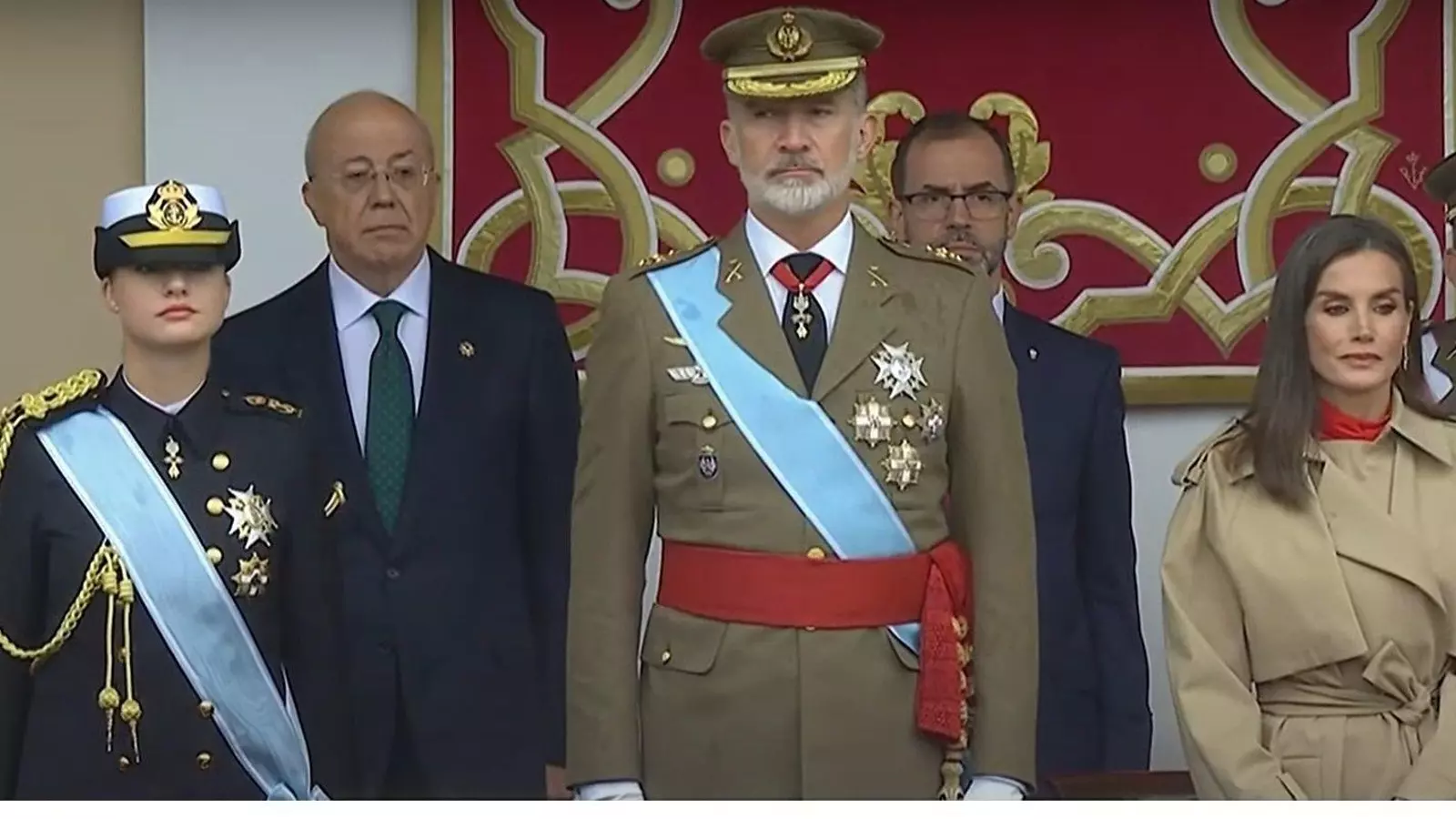Una cita en la que estarán el presidente del Gobierno, Pedro Sánchez, el líder de la oposición, Alberto Núñez Feijóo, y diferentes presidentes autonómicos, entre ellos Alfonso Rueda, y que presidirán los reyes Felipe VI y Letizia y la princesa Leonor. Estaba previsto que en el desfile, que arranca a las 11,00 horas, estén presentes más 4.000 integrantes de las Fuerzas Armadas y Fuerzas y Cuerpos de Seguridad del Estado. Además se exhibirán un total de 166 vehículos, diversas aeronaves y 210 caballos.