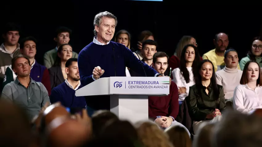 Durante su intervención, Feijóo también ha aludido a "una pinza" entre PSOE y Vox en Extremadura, que mantienen una actitud de "ni contigo ni sin ti", frente a los que el PP está "con Extremadura". Núñez Feijóo ha señalado que "hay muchos partidos que se presentan a las elecciones" del próximo 21 de diciembre en Extremadura, pero únicamente "hay dos opciones", que son "los que para esta tierra la quieren parar o las que la queremos mover", ha dicho.