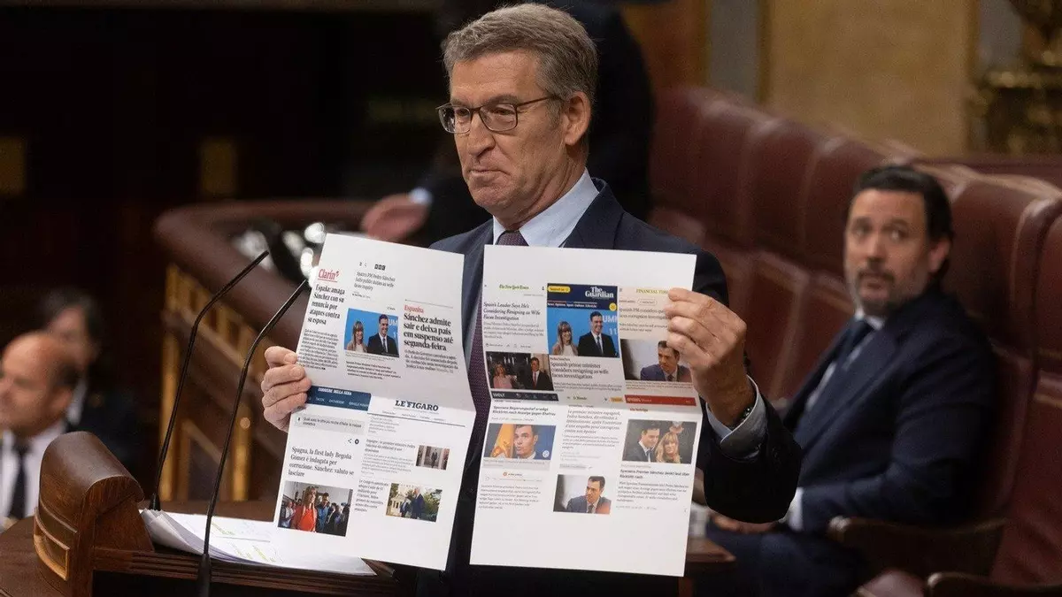 En su turno de preguntas, el presidente del Partido Popular, Alberto Núñez Feijóo, ha insistido en la situación judicial a la que se enfrenta la esposa del presidente del Gobierno. "Constésteme. ¿Le consta si su mujer tiene la condición de investigada en un juzgado de Madrid o no? Han salido informaciones contradictorias y seguro que usted me lo puede explicar", le ha preguntado Sánchez.