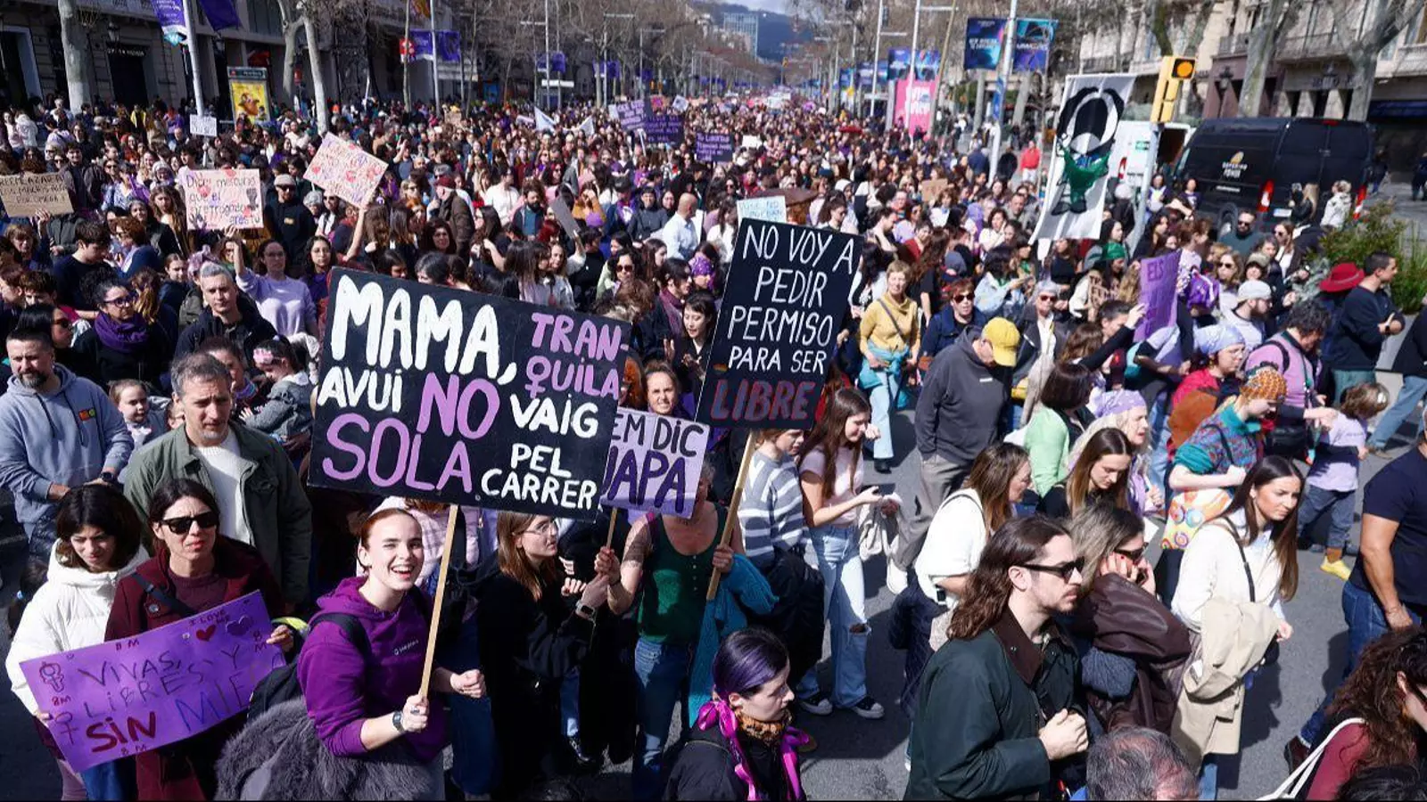 En Cataluña, la manifestación principal celebrada en Barcelona por la mañana reúne a unas 22.000 personas en el centro de la ciudad, según cifras de la Guardia Urbana. Este año la protesta busca dar respuesta al “embate reaccionario a nivel global” que va contra los derechos políticos, sociales y laborales de las mujeres, bajo el lema “Ante el imperialismo colonial y fascista: lucha transfeminista”.