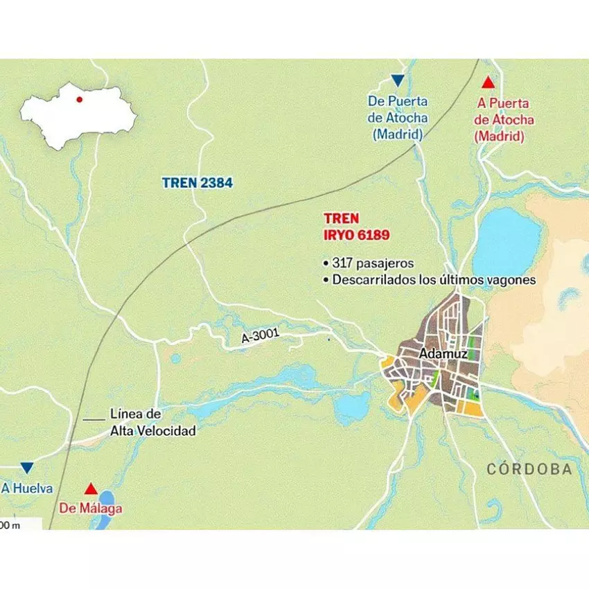Lugar del accidente de trenes en Adamuz, Córdoba