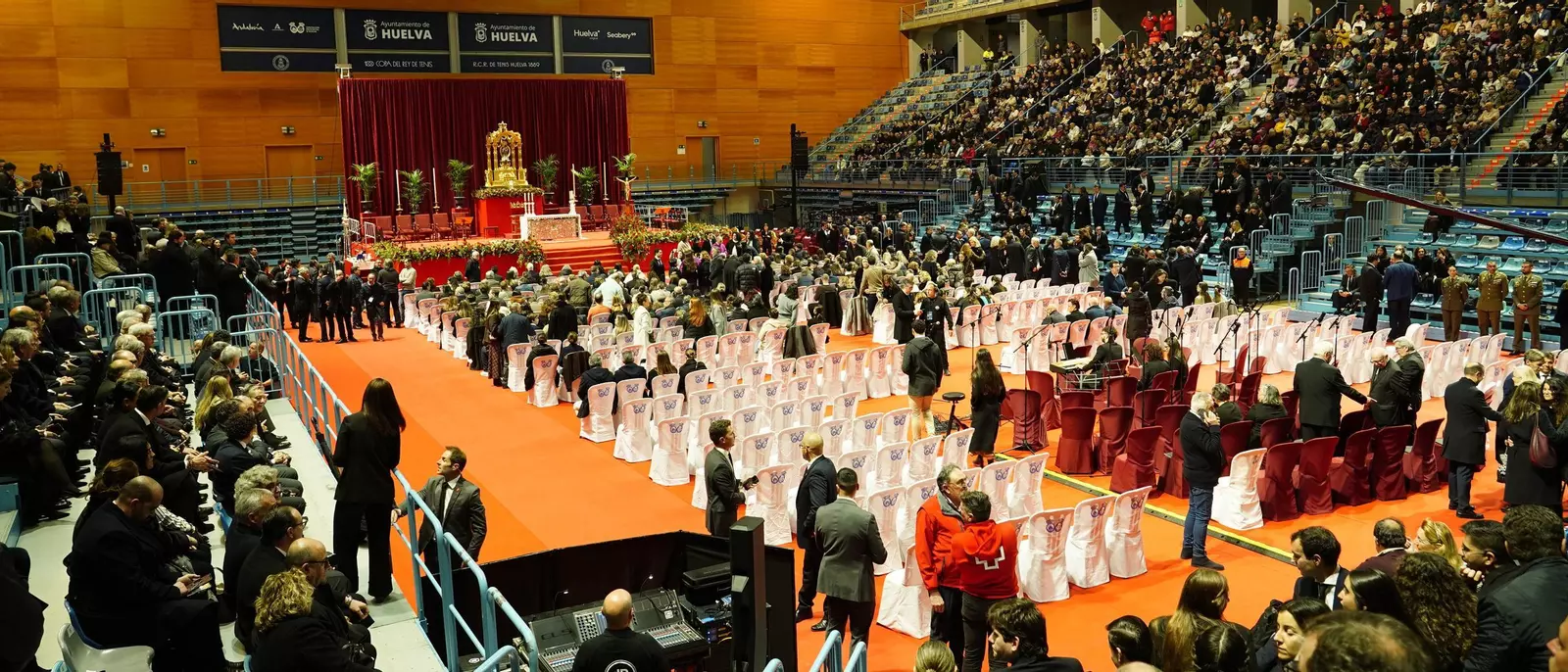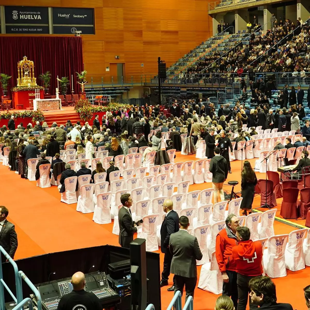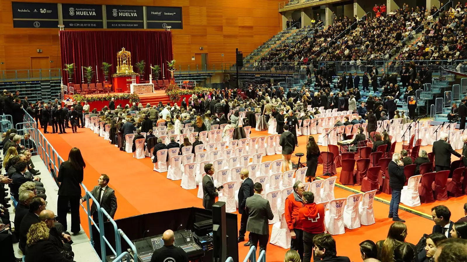 La ceremonia está presidida por el obispo de Huelva, Santiago Gómez Sierra, y concelebrada por otros obispos y más de un centenar de sacerdotes. El altar lo preside la Virgen de la Cinta, patrona de la ciudad, y un crucifijo de especial valor simbólico.
