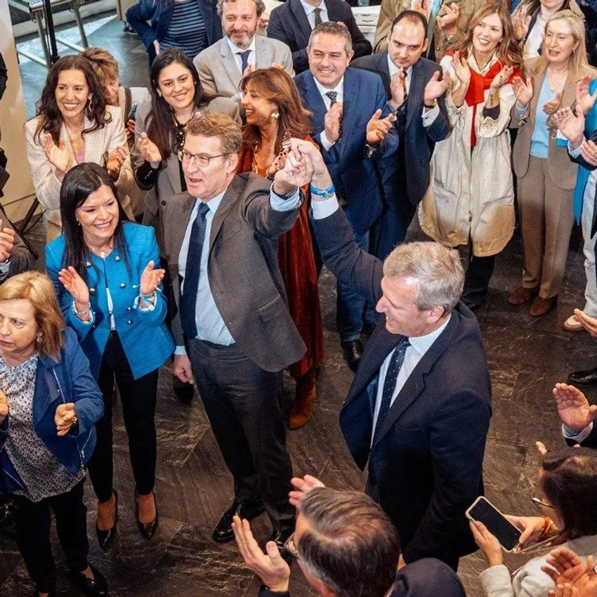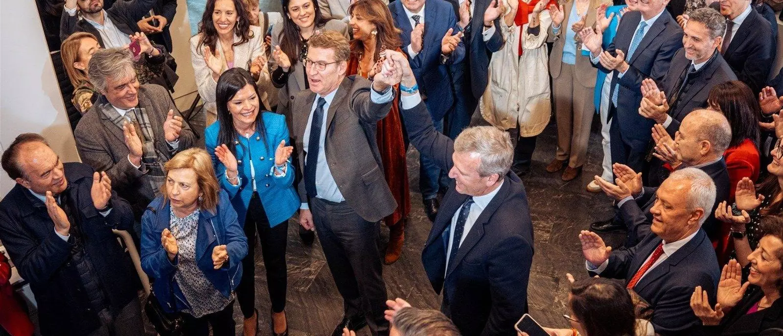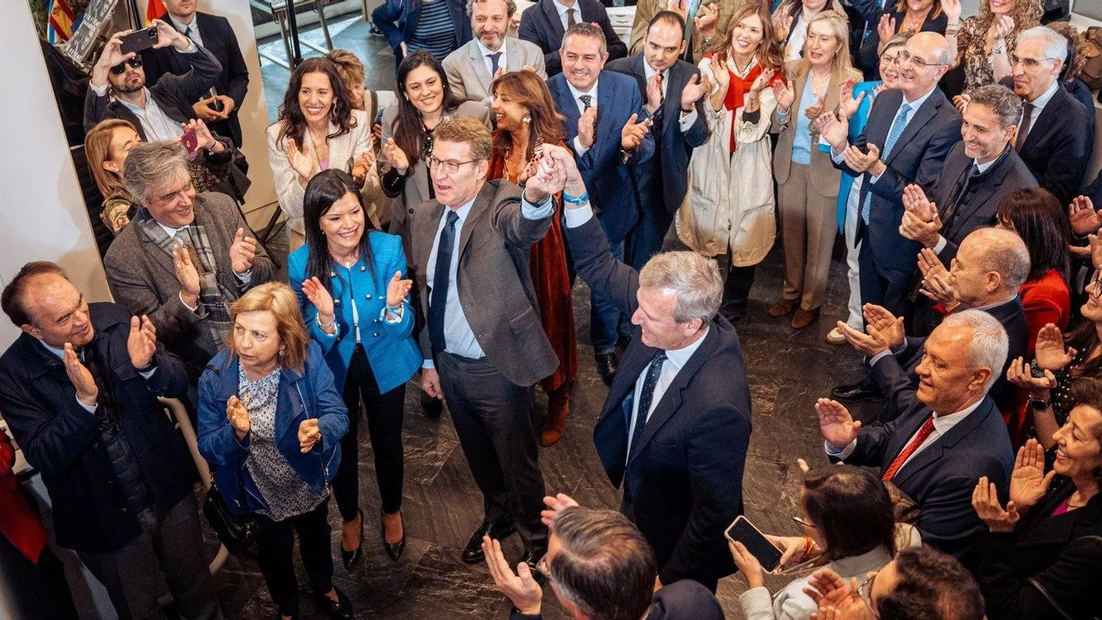 El Partido Popular ha recibido a Alfonso Rueda, presidente de la Xunta de Galicia, entre aplausos tras lograr su primera mayoría absoluta, quinta consecutiva para el PP, en las elecciones gallegas del 18F.
