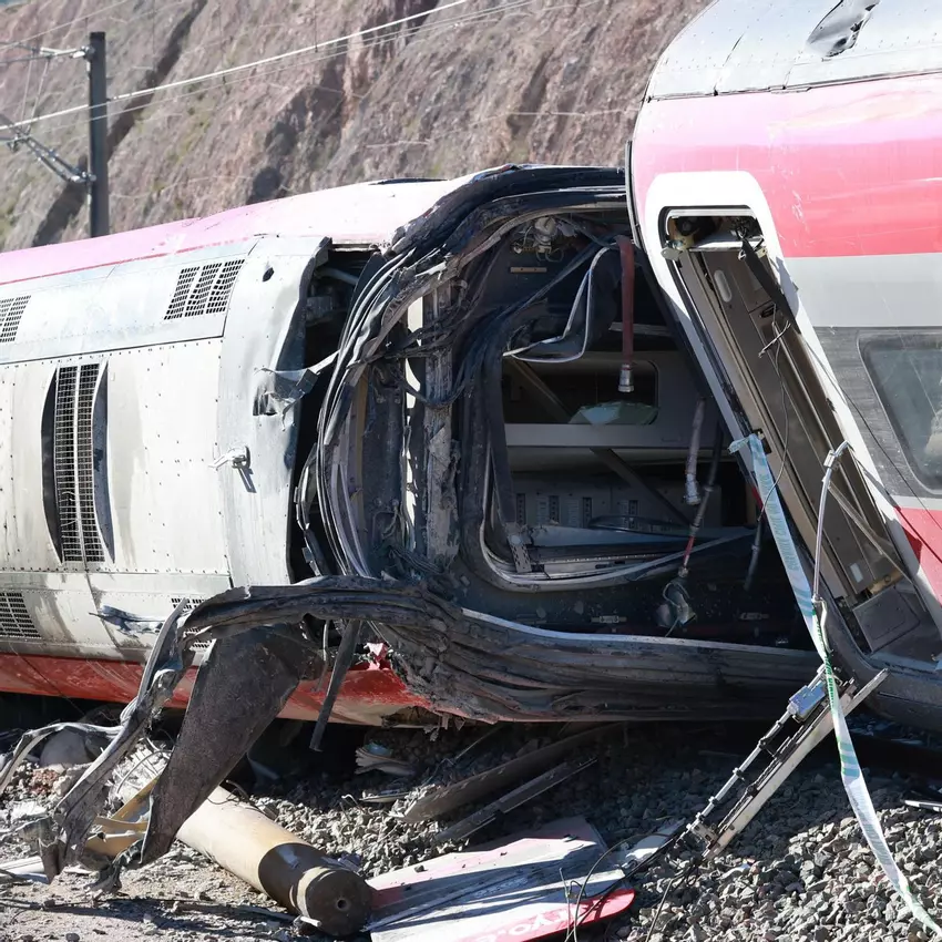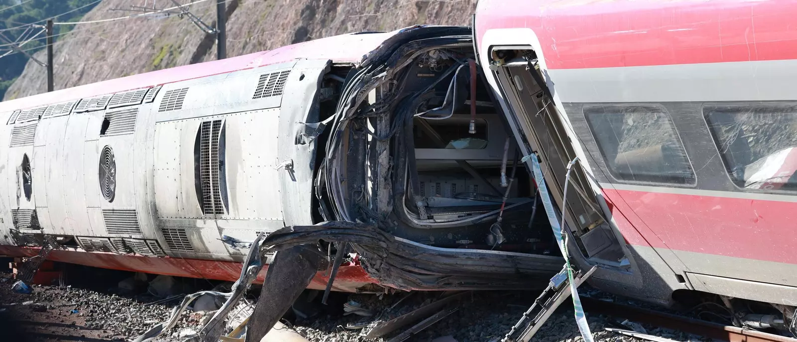 Las vías presentan obstáculos y restos que evidencian la magnitud del accidente.
