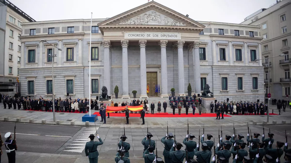 Los actos institucionales con motivo del 47 aniversario de la Constitución de 1978 han arrancado este sábado a las 10:30 horas en la Puerta de los Leones del Congreso con el solemne izado de la bandera nacional, organizado por el Estado Mayor de la Defensa.