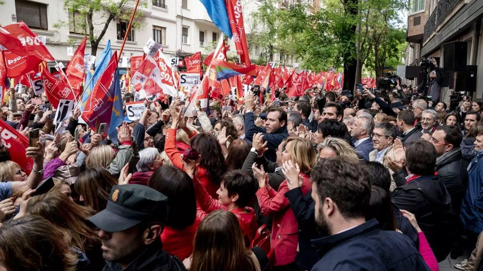 En la calle, miles de personas llegadas desde distintos puntos de España, en una movilización de última hora, coreaban consignas a favor del presidente: “No estás solo”, “basta ya” gritaban en contra de la “campaña de acoso y derribo” en su contra que denunció el propio Sánchez en su carta a la ciudadanía. El pasado miércoles Sánchez anunció por sorpresa que se retiraba unos días de la vida pública para decidir si continuaba o no en La Moncloa. El anuncio dejó en shock a su propio partido, que no estaba al tanto de los planes del presidente, pero en pocos días reaccionaron y decidieron mantener el Comité Federal que estaba convocado de antemano y convertirlo en un gran acto para mostrar total adhesión con su líder.