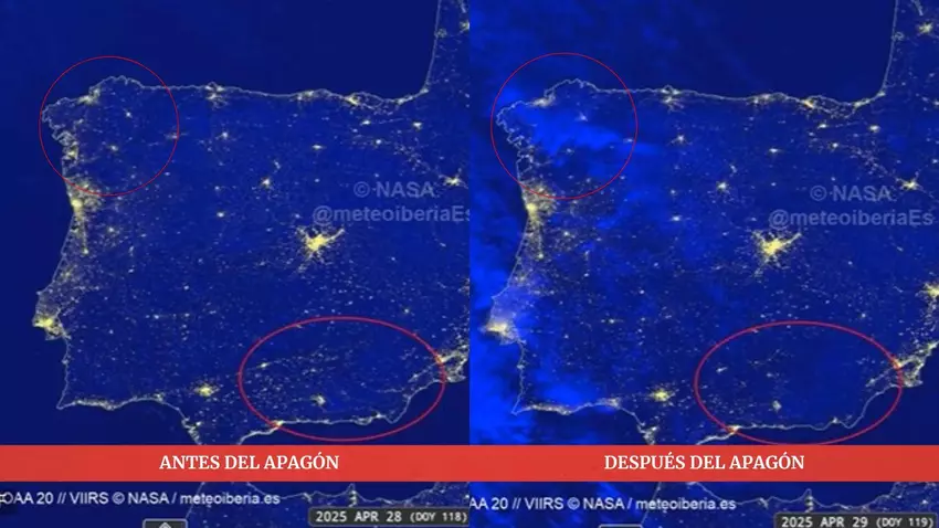 Ante el apagón vivido en España este lunes las primeras imágenes satélite llegan este martes a las redes sociales mostrando el antes y el después del corte de luz.