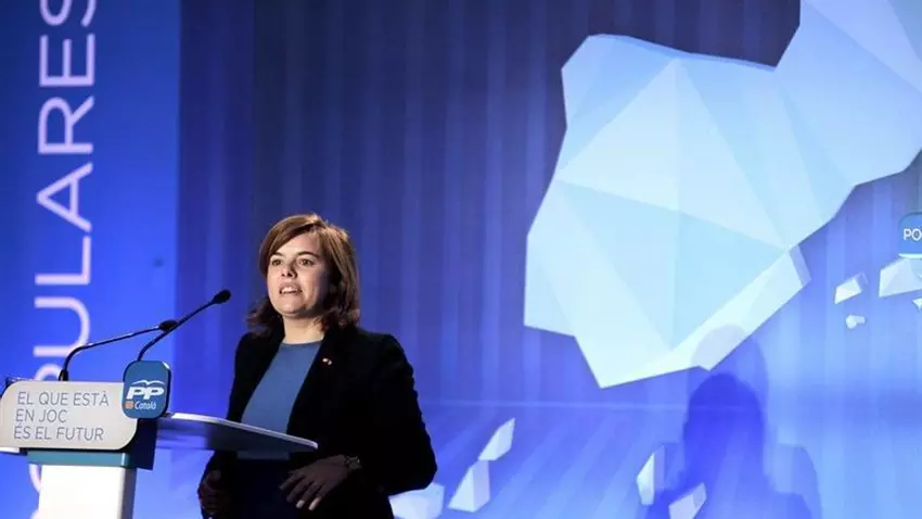 La vicepresidenta ha participado en el mitin de cierre de campaña del PP en Badalona ante 750 personas y junto a la líder del PP catalán, Alicia Sánchez-Camacho, el número 2 del PP en estas elecciones europeas, Esteban González Pons, el candidato de los populares catalanes, Santi Fisas, y el alcalde, Xavier García Albiol.