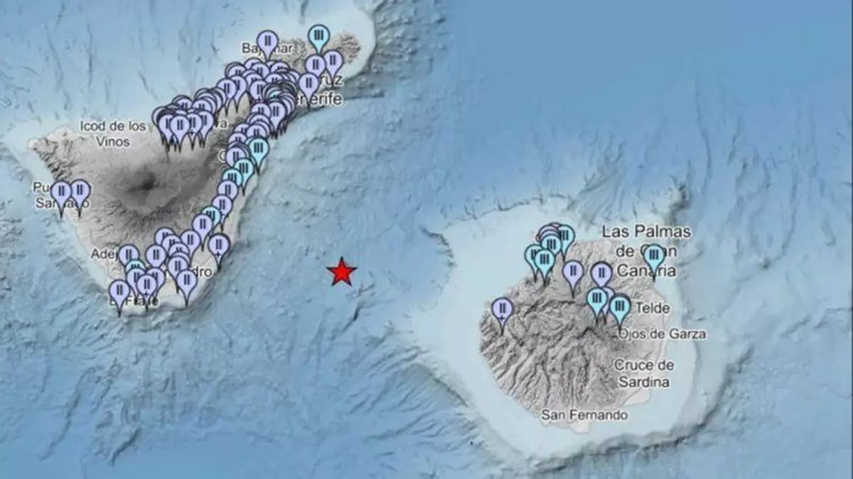 El volcán submarino situado entre Gran Canaria y Tenerife, conocido como "Volcán de Enmedio", registró a las 12.26 horas de este jueves un terremoto de magnitud 4,1 mbLg que fue sentido en múltiples zonas de ambas islas capitalinas.