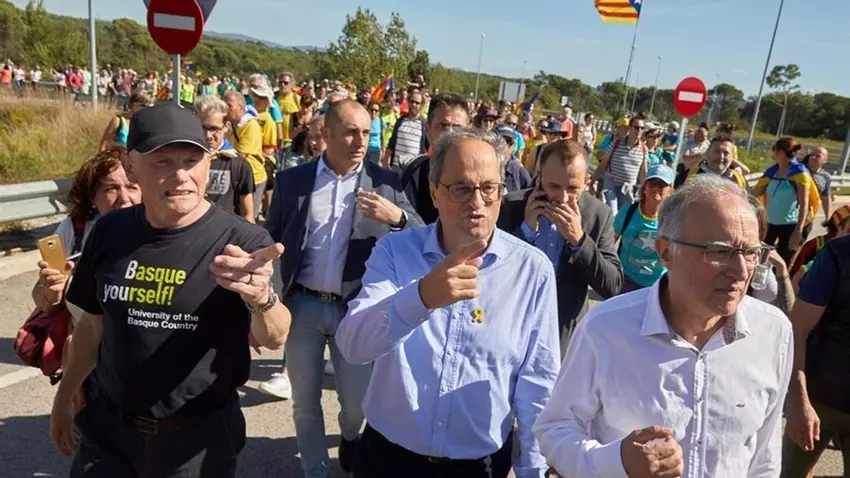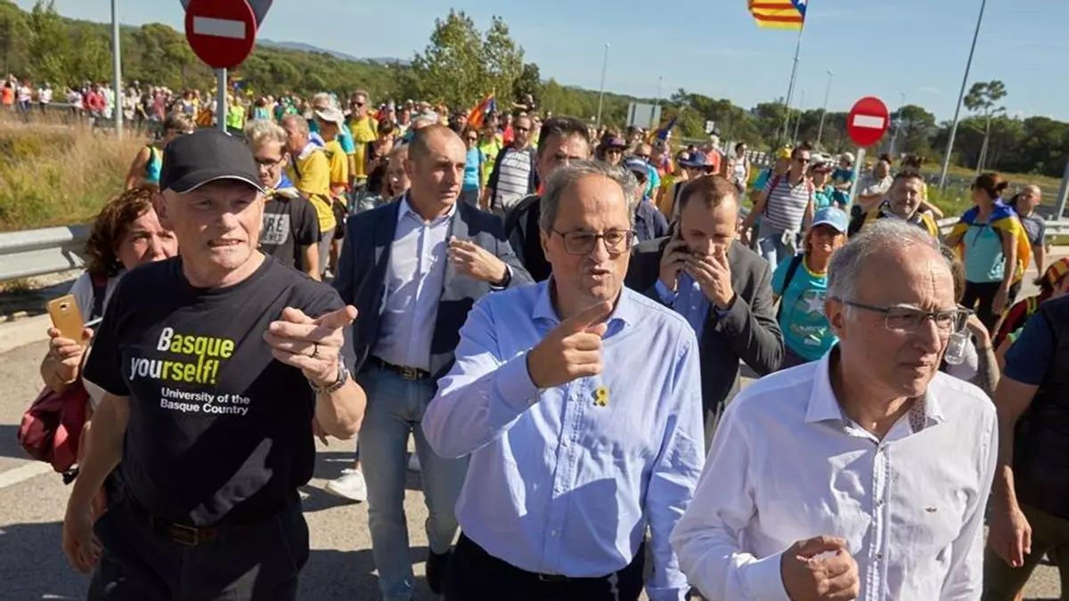 La marcha a la que se ha sumado Torra ha partido a las 9.00 horas de Girona y transcurre por la N-II, cuya circulación han sido cortada por los manifestantes.