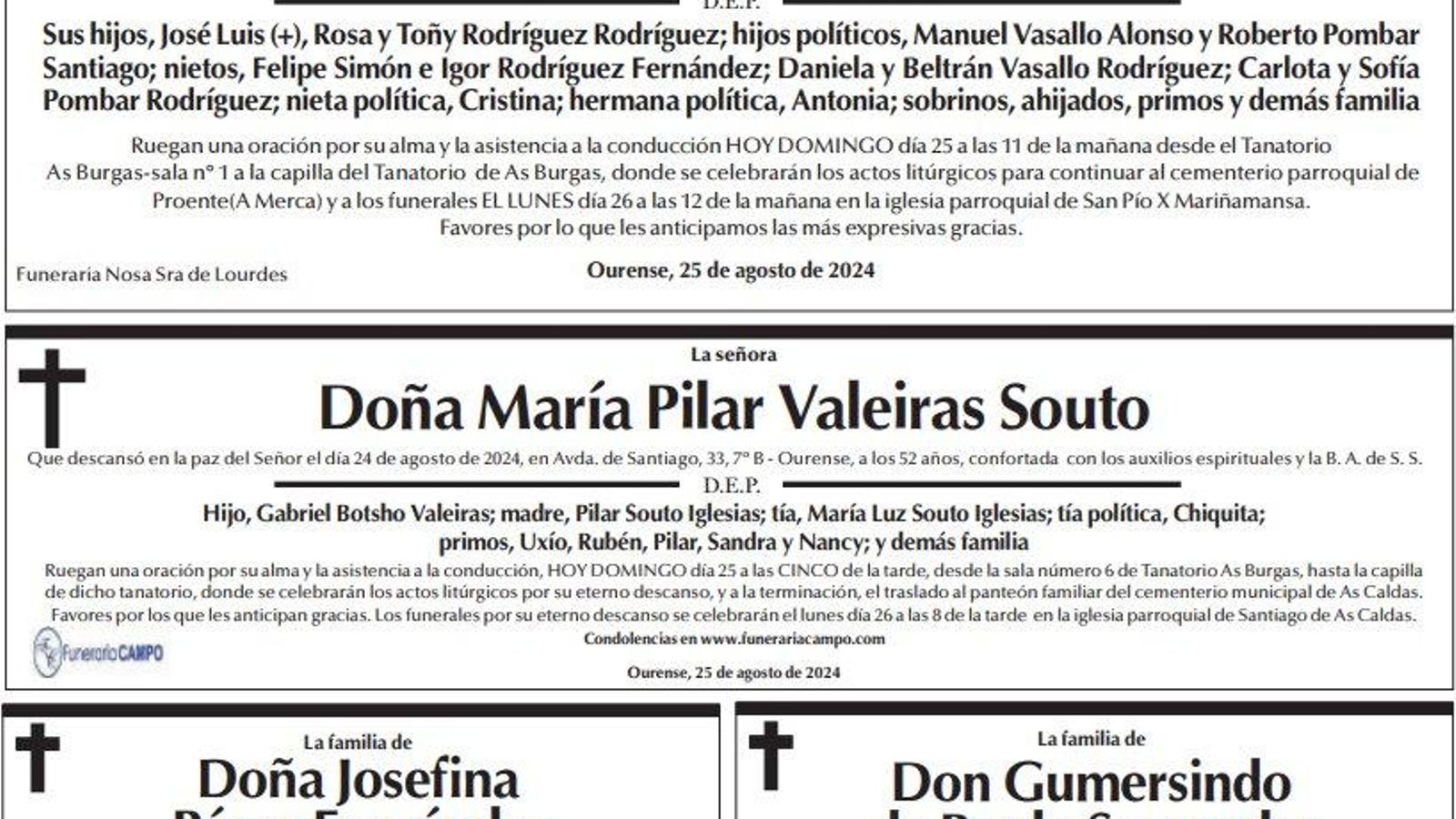 Las esquelas de este domingo, 14 de diciembre, en Ourense