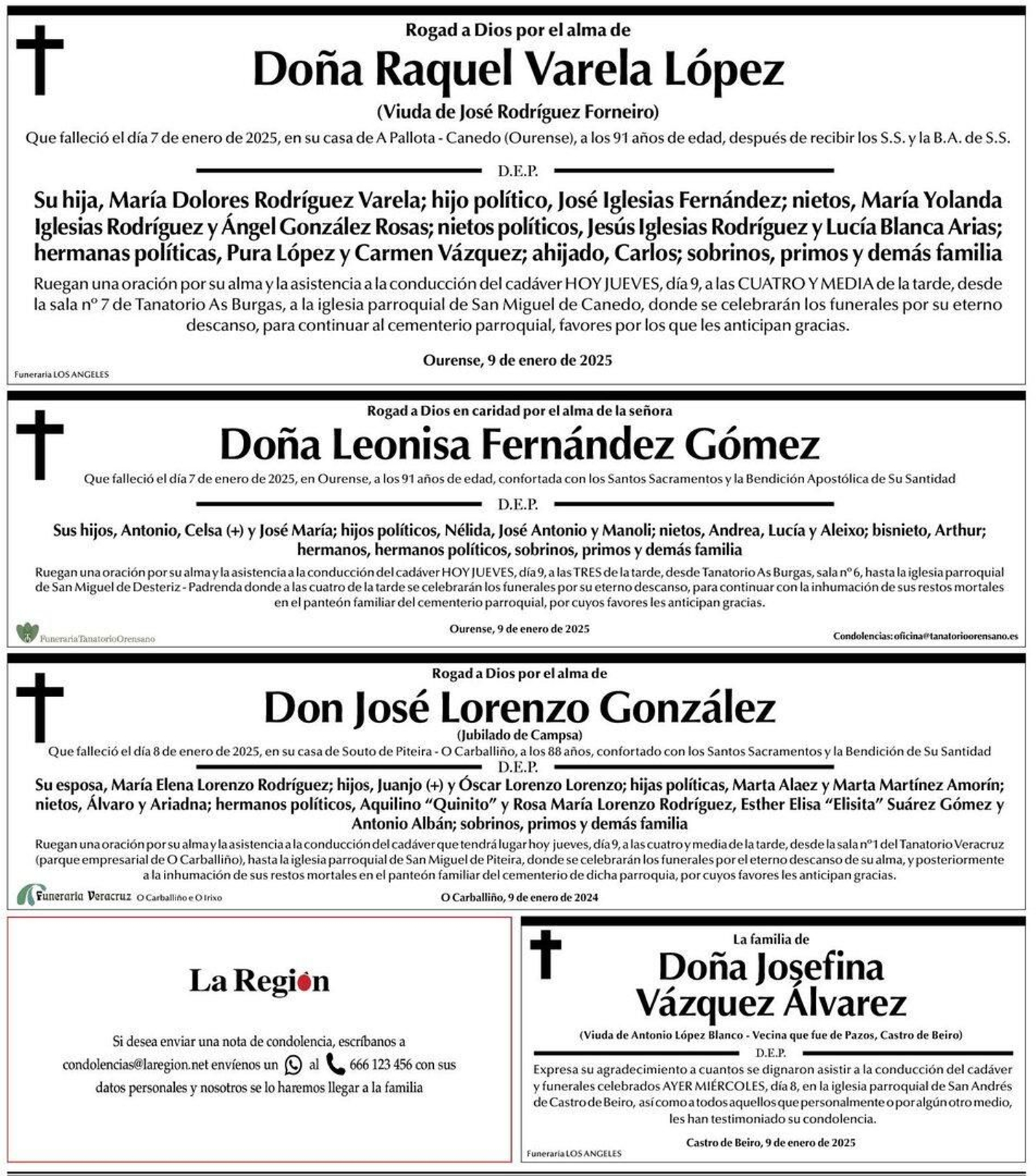Si desea enviar un mensaje de condolencia, escríbanos a condolencias@laregion.net, envíenos un WhatsApp al número de teléfono de La Región 666123456 con sus datos personales y el equipo de La Región se pondrá en contacto a la mayor brevedad. Desde La Región se hará llegar el mensaje de condolencias a la familia.
