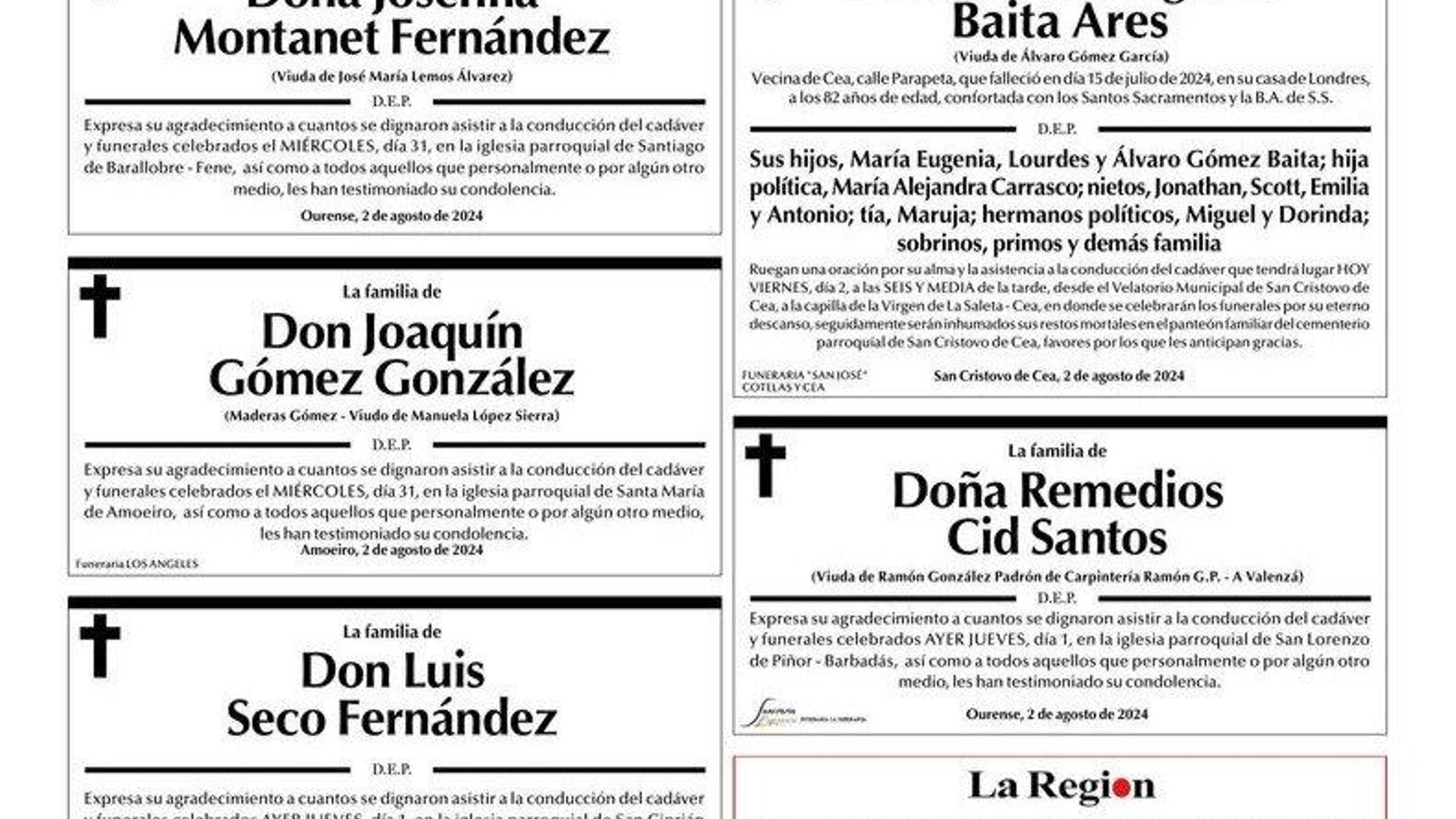 Las esquelas de este viernes, 2 de agosto, en Ourense